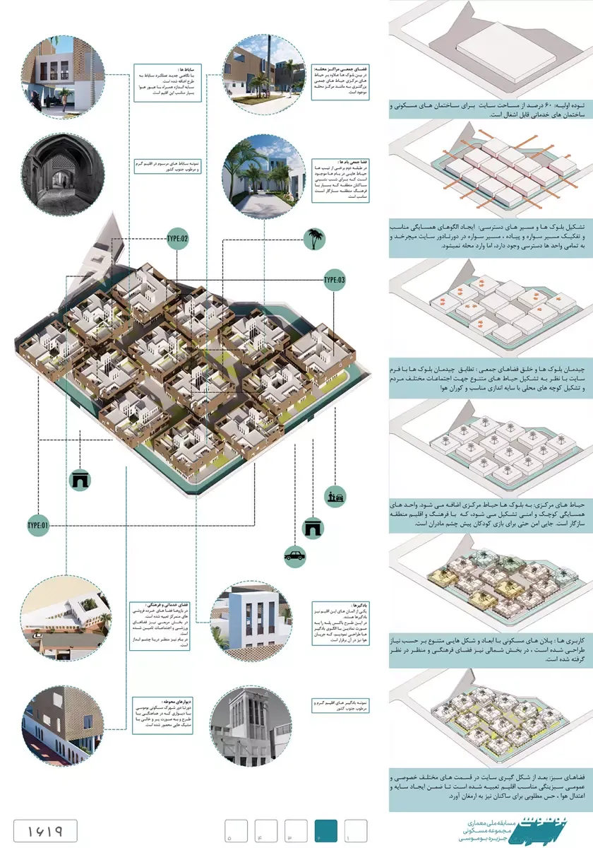 پروژه‌ای معماری در مورد یک شهرک مسکونی در جزیره بوموسی ایران، با هدف ارائه فضایی مطلوب و متناسب با ویژگی‌های اقلیمی این منطقه طراحی شده است. در این پروژه، فضای عمومی و خصوصی به‌صورت سلسله‌مراتبی تنظیم شده است.