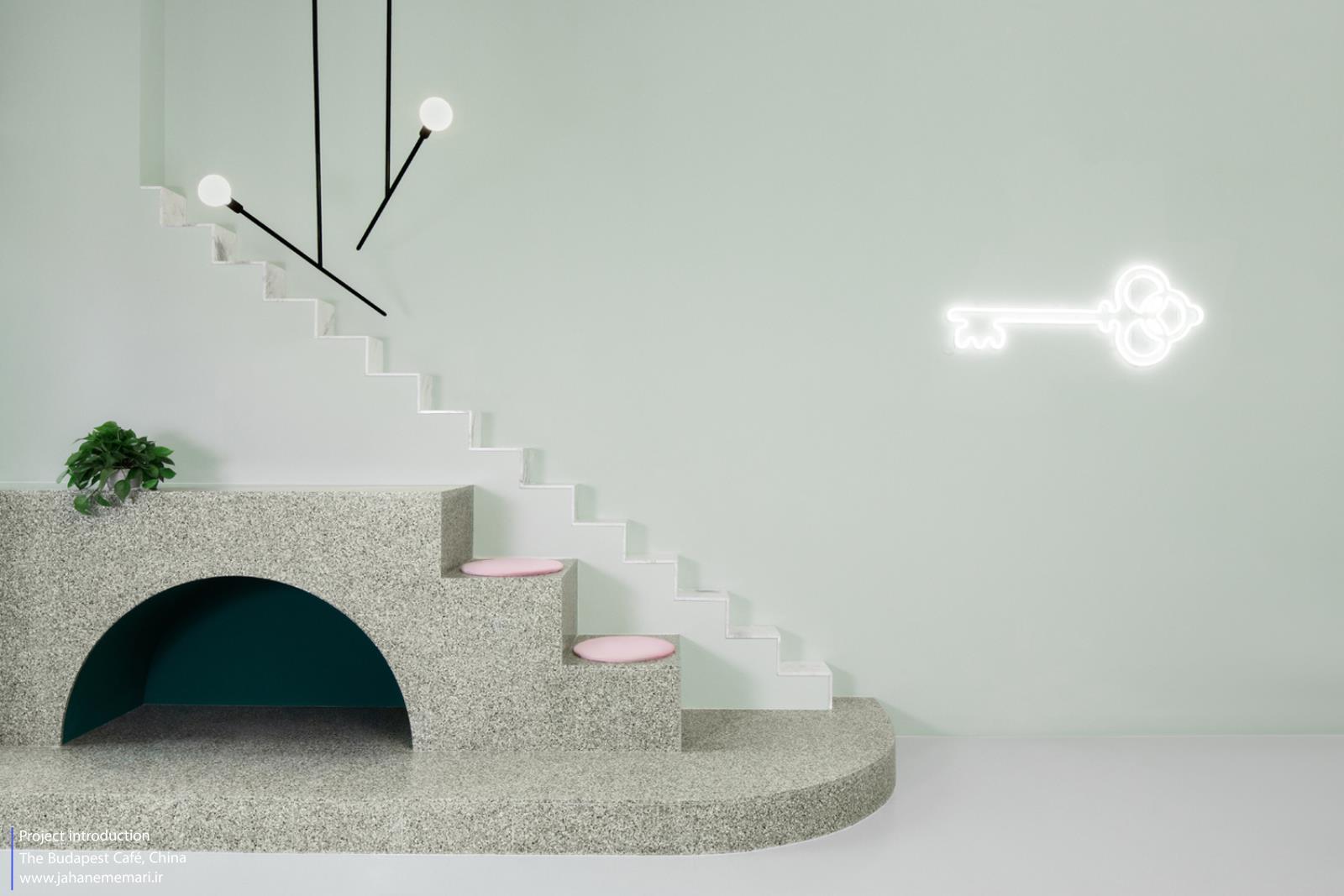 کافه بوداپست – طراحی فانتزی و رنگهای چشمگیر این کافه را به یکی از مکانهای محبوب شبکههای اجتماعی تبدیل کرد. در تصاویر بالا مشاهده میکنید که چگونه عناصر معماری همچون راهپلههای نمادین، صندلی حبابی آویزان و نئون دیواری (شکل کلید) همگی حسوحالی بازیگوش و تخیلی به فضا دادهاند. مشتریان در این محیط احساس میکنند بخشی از یک صحنه سینمایی هستند و همین آنها را ترغیب میکند لحظات حضور خود را ثبت و منتشر کنند. چنین طراحی فضایی نهتنها مشتریان حضوری را جذب میکند، بلکه به لطف اشتراکگذاری آنلاین، موجی از محتوای تبلیغاتی غیرمستقیم پیرامون برند کافه شکل میگیرد.