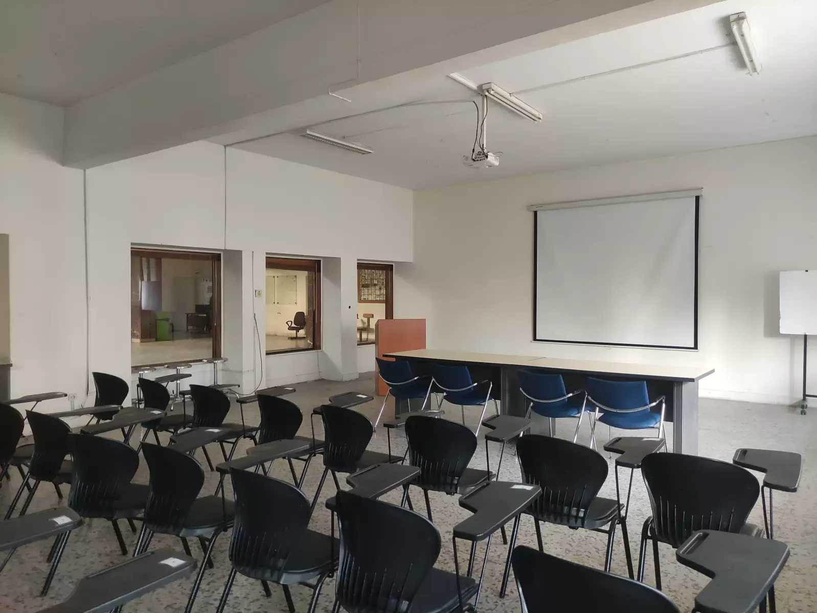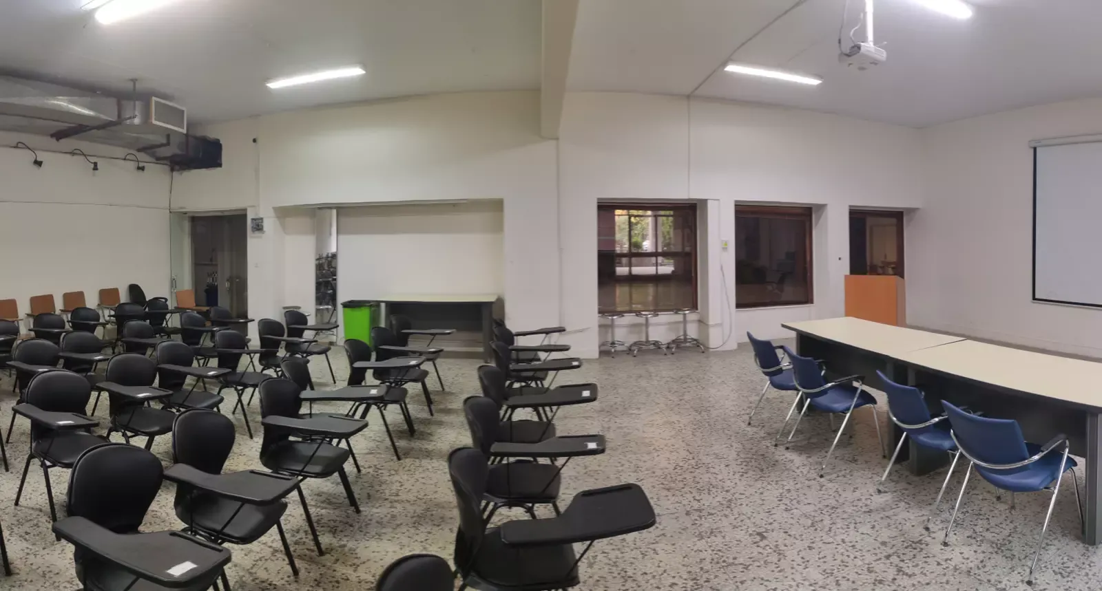 کلاسهایی با حداکثر 40 دانشجو در این سالن برگزار میشود. دانشجویان رو به جداره شرقی سالن مینشینند. مدرس هم مقابل همان جداره با استفاده از ویدیو پروژکتور یا تخته سفید متحرک درس میدهد. -