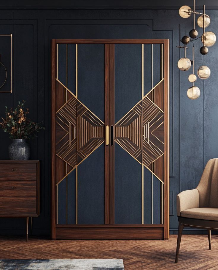 در مبلمان و پوششها نیز کاربرد پارچههای مخمل یا چرم رنگی در کنار سطوح براق لاکی و فلزات درخشان (طلایی یا نقرهای)، جلوهای از تجمل آرتدکو را در فضایی مدرن ایجاد میکند. رنگهای غنی مانند آبی نفتی، سبز زمردی و زرشکی عمیق دوباره در پالتهای امروزی ظاهر شدهاند؛ اغلب در کنار این رنگها از عناصر شاخص آرتدکو – مانند آباژورها یا لوسترهای با طرح خورشیدی و اشکال هندسی – به عنوان نقاط کانونی در فضا بهره گرفته میشود تا یادآور زیباییشناسی آن دوران باشد.