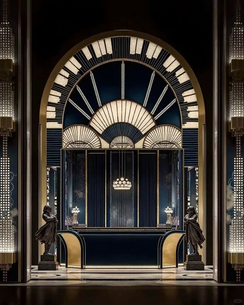 این ترکیب متریالهای گرانبها و فرم منحصربهفرد، فضایی ماندگار و باشکوه پدید آورده که هنوز هم بازدیدکنندگان را تحت تأثیر قرار میدهد. بهطور مشابه، فروشگاههای بزرگ و لابی ادارات مرکزی شرکتها در این دوره با سطوح آینهکاریشده، ستونهای استیل و چلچراغهای مجلل مزین شدند تا تصویر پیشرفته و لوکسی از کسبوکار را به نمایش بگذارند.