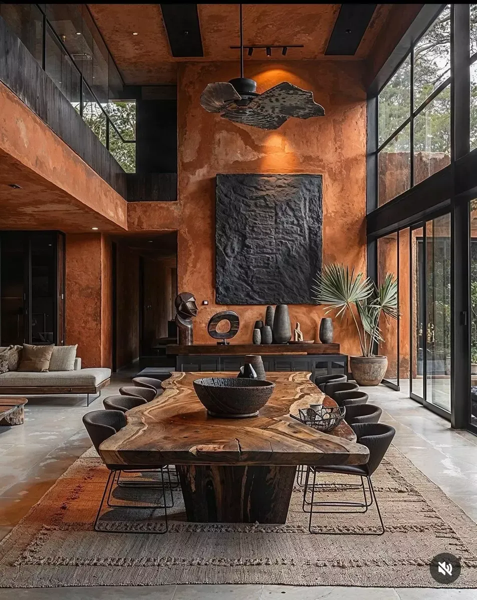 روستیک صنعتی (Industrial Rustic): با الهام از تبدیل کارگاهها و کارخانههای قدیمی به فضاهای مسکونی، این سبک عناصر زمخت و کاربردی صنعتی را با مصالح طبیعی روستایی ترکیب میکند. آجر بدون لعاب، اسکلت فلزی نیمهخام و سطوح بتنکاری شده معمولاً در کنار چوبهای کهنه و پارچههای ساده بهکار میروند تا ظاهری گرم و در عین حال بهروز ایجاد شود.