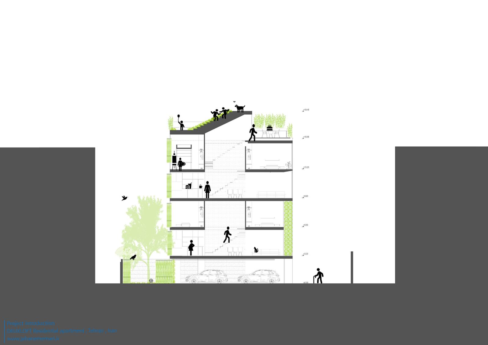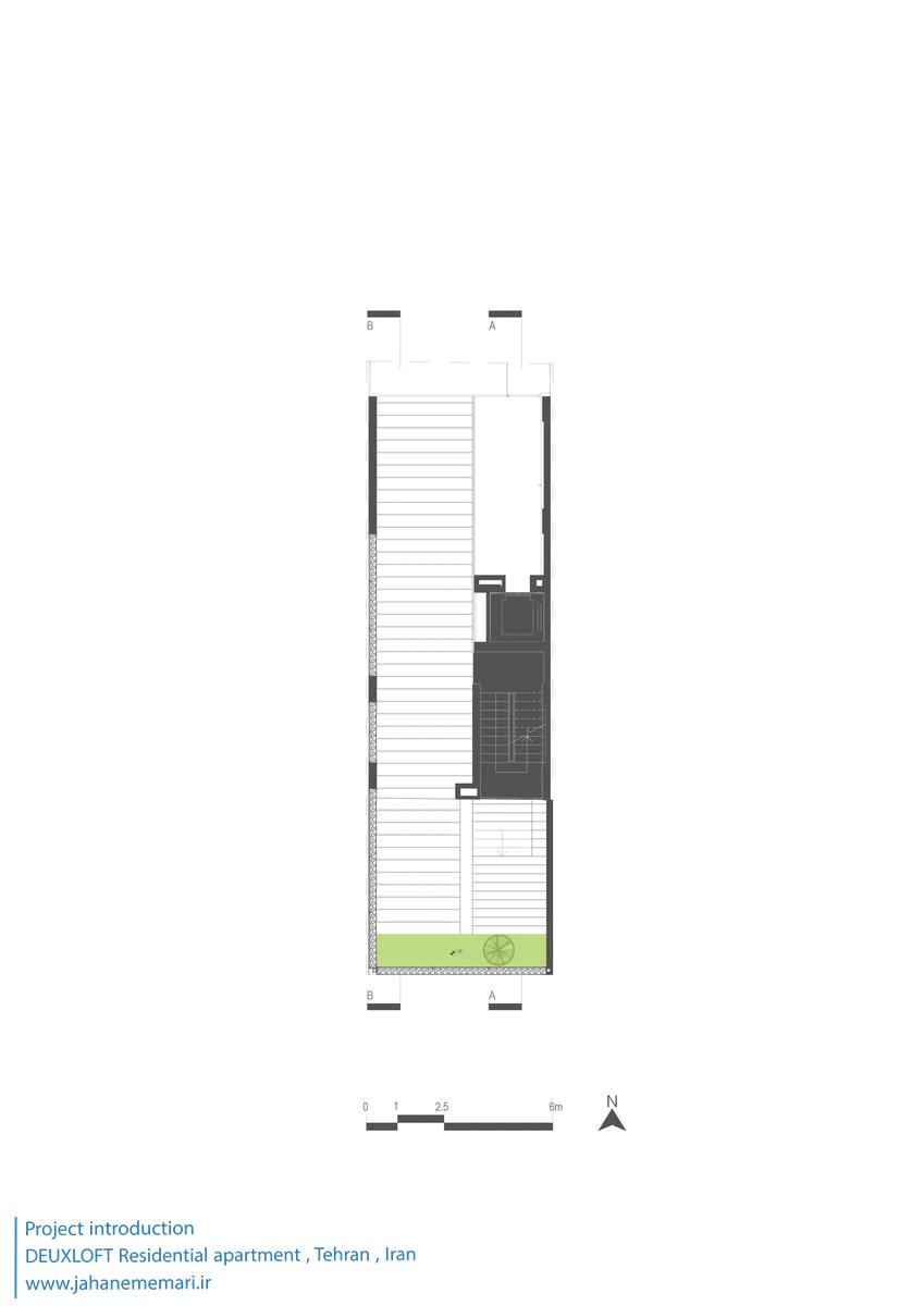 این پروژه که در یک بافت شهری منسجم و فعال قرار دارد، در قطعه ای به ابعاد ۲۰ در ۶ متر ساخته شده است. قرارگیری دو واحد دوبلکس روی هم، دسترسی مستقیم به دو فضای باز خصوصی را فراهم می کند که یکی روی بام و دیگری در قسمت باقی مانده حیاط قرار گرفته است. در جهت کاهش هزینه ساخت و ساز و تاکید بر زیباشناسی کمینه‌گرا، نازک کاری ساختمان به حداقل رسیده است. برخی از قسمت های پروژه با آجرهای حفظ شده از ساختمان قبلی ساخته شده است. برای اجتناب از مداخله بیشتر در نمای شهر، جبهه رو به خیابان بیانی ساده دارد که بر چینش عمودی واحدها روی هم تاکید می کند. نهایتا فعال سازی بام فضایی باکیفیت را در اختیار ساکنان قرار می دهد و تجربه جدیدی را در طراحی نمای پنجم شهر مطرح می کند.