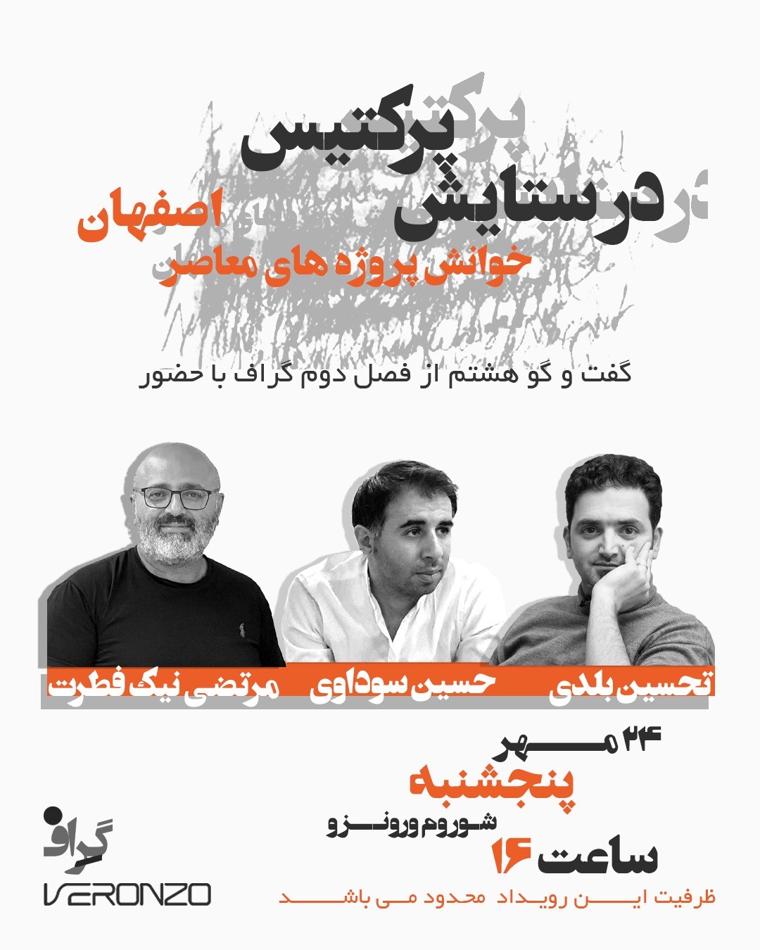 در ادامه سلسله گفتوگوهای فصل دوم گراف با موضوع “خوانش”، این بار به همراه مهندس تحسین بلدی، مهندس حسین سوداوی و دکتر مرتضی نیکفطرت، به خوانش پروژههای معماران اصفهان خواهیم پرداخت و در این راستا در مورد معماری و مسائل مرتبط گفتوگو خواهیم کرد.