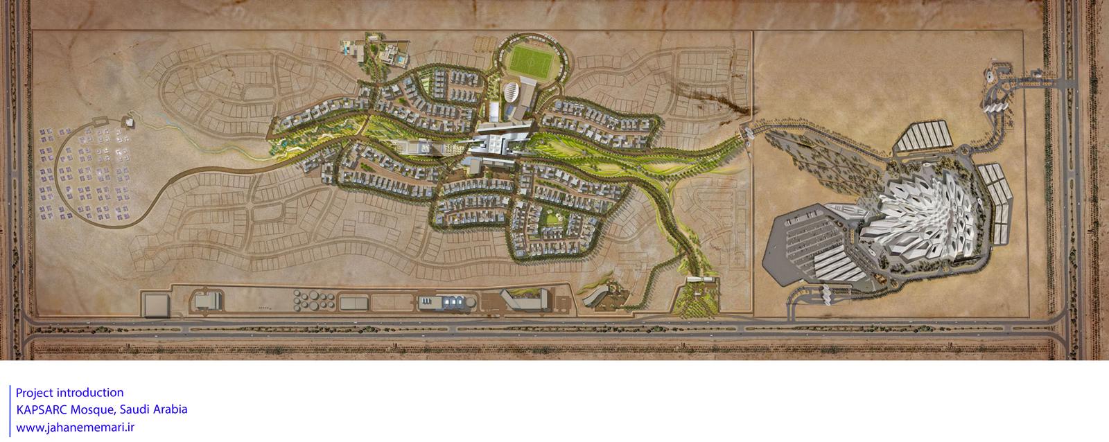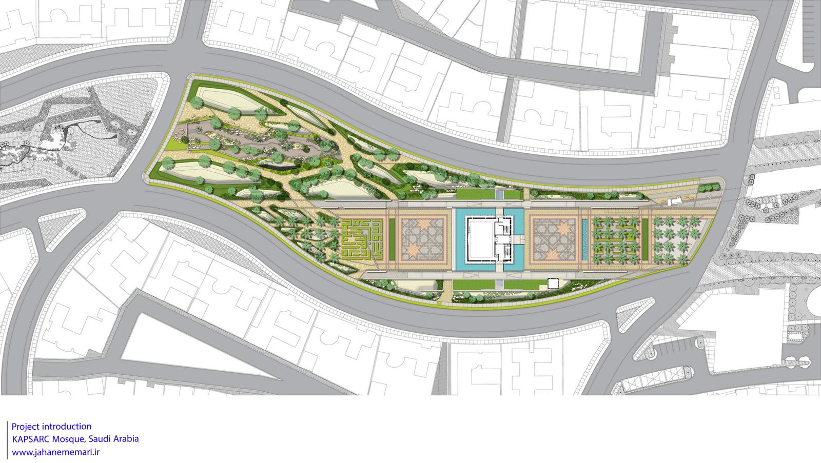 مرکز معنوی جامعهی مرکز تحقیقات و مطالعات نفتی ملک عبدالله (KAPSARC) مسجدی است که در پارک خطی در قلب سایت قرار دارد. این مسجد به وضوح در سراسر جامعه قابل مشاهده است و دسترسی به آن از طریق حیاطهای بیرونی است که با مکه و کعبه، مقدسترین مکانهای اسلام، همراستا شدهاند.