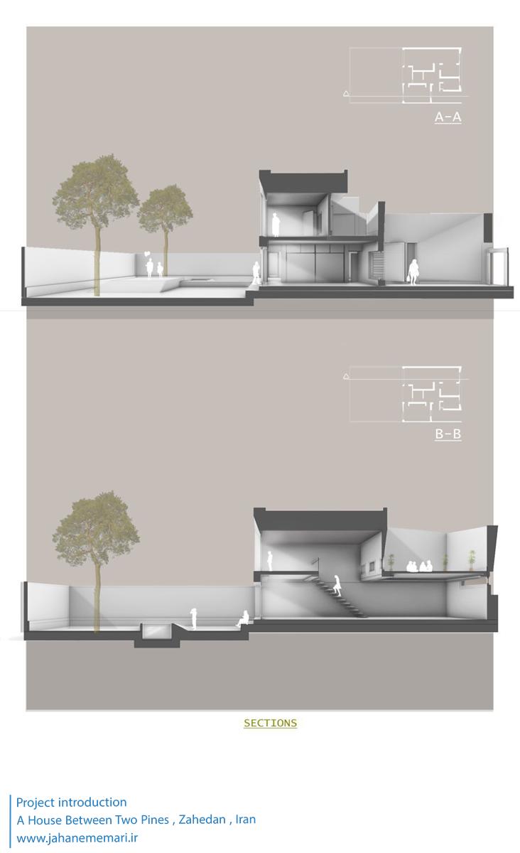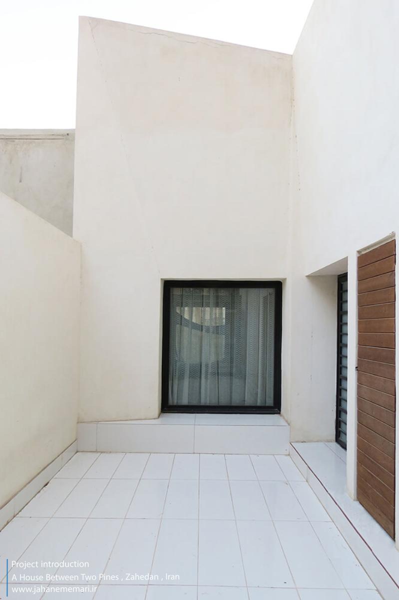 درخواست دیگر داشتن یک حیاط خصوصی برای میهمانی های خانوادگی و ورزش و آفتاب گرفتن بود. بنابراین دیوارهای مشرف به واحدهای همسایه ارتفاع یافت و بدین ترتیب جداره های رو به خیابان دارای نمایی شیب دار شدند.