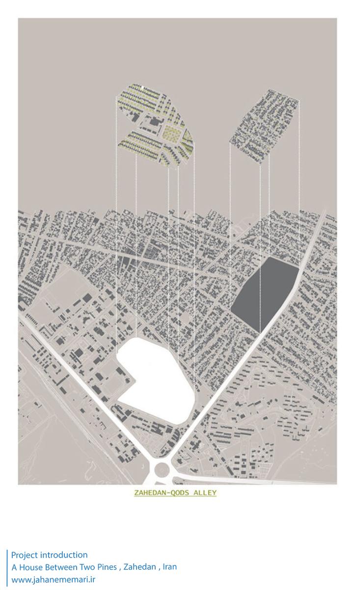 خانه ای میان دو کاج ویلایی است به نام کوی فرح (کوی قدس فعلی) که در اواخر دهه 40 شمسی برای اسکان کارکنان مهاجر و بلندپایه دولت در زاهدان ساخته شده است.