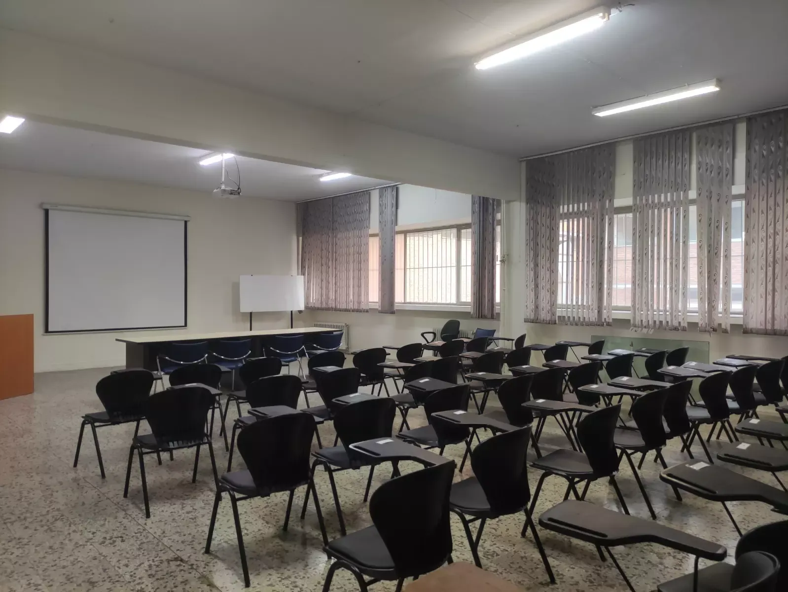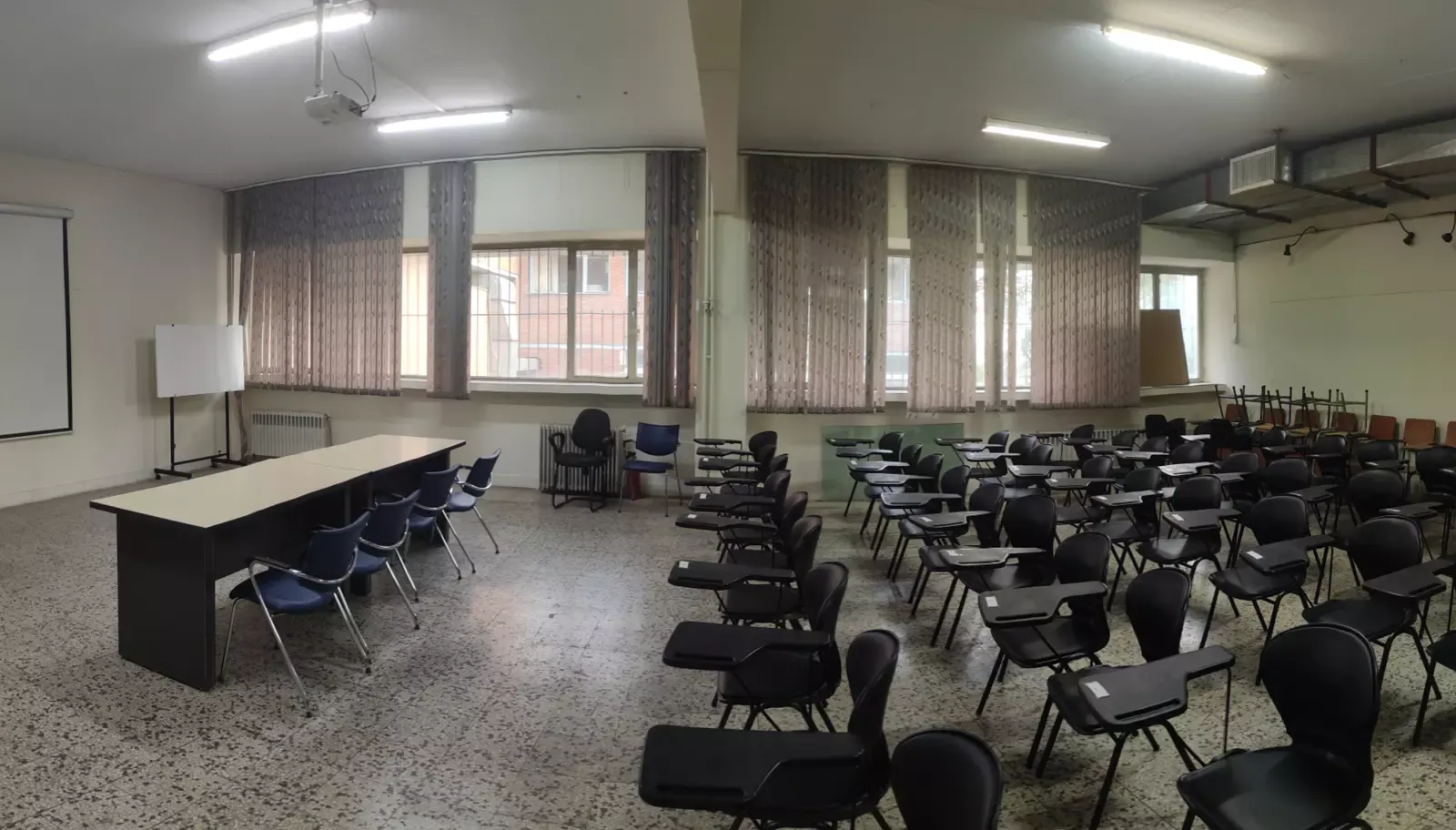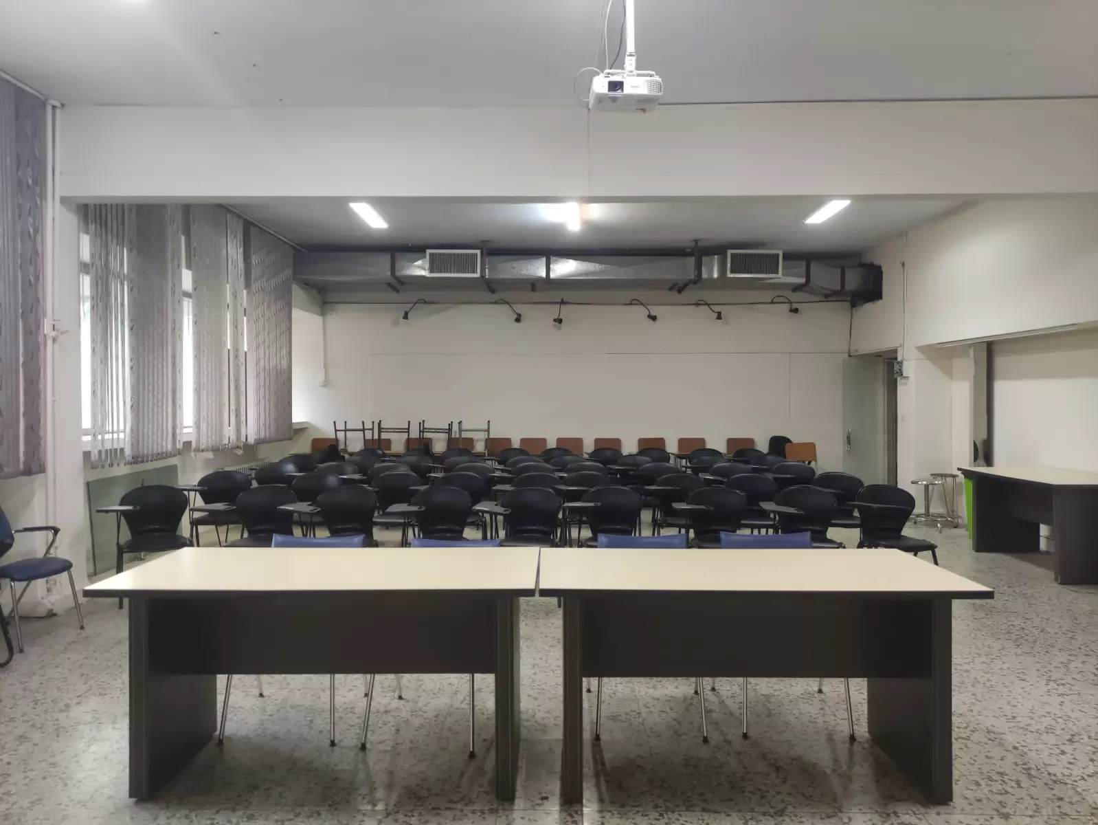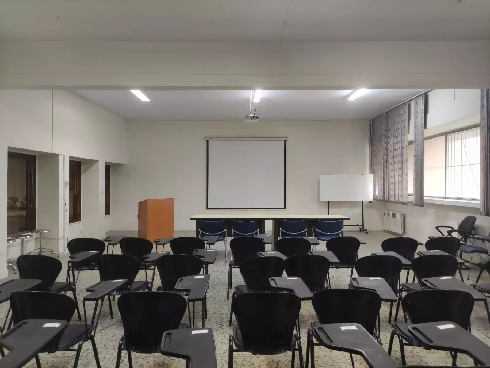 کلاسهایی با حداکثر 40 دانشجو در این سالن برگزار میشود. دانشجویان رو به جداره شرقی سالن مینشینند. مدرس هم مقابل همان جداره با استفاده از ویدیو پروژکتور یا تخته سفید متحرک درس میدهد. -