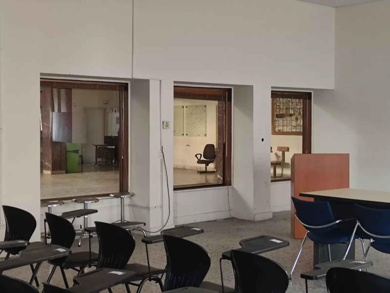 امکان طراحی بازشو در دیوار غربی (دیوار مشترک با راهروی دانشکده) وجود دارد. در این صورت جهت ارائه سالن عوض میشود و پرده نمایش بر دیوار شرقی قرار میگیرد.