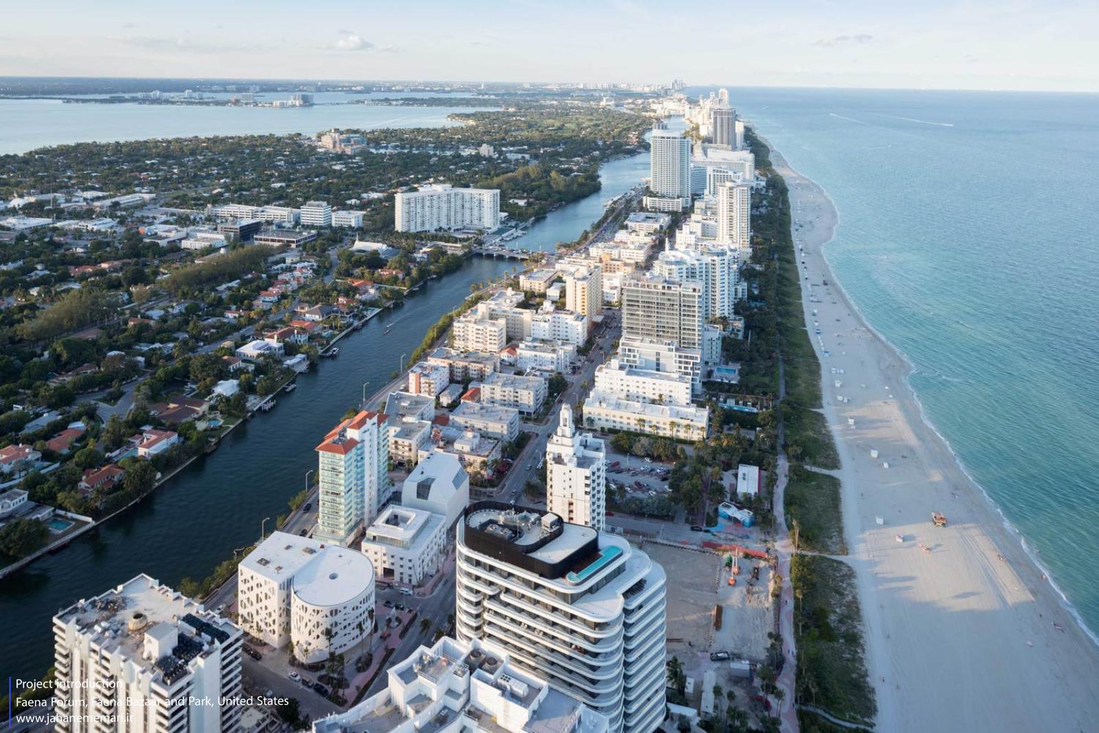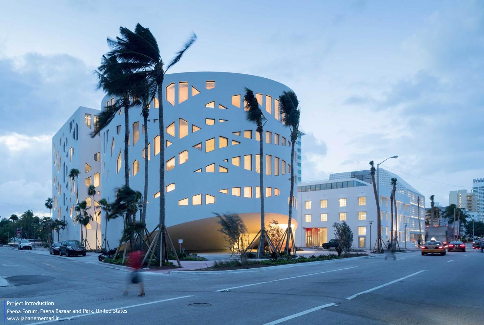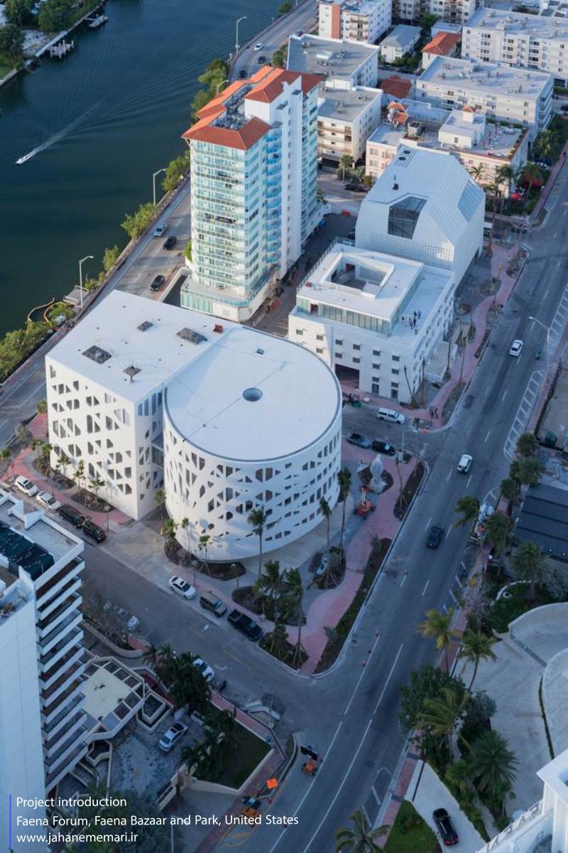 بهعنوان هستهی فرهنگی منطقهی فائنا (Faena District)، ساختمان فائنا فوروم (Faena Forum) بهمنزلهی نقطهی تمرکز برای این محله و ناحیهی میدبیچ (Mid-Beach) بهشمار میرود. این مجموعه که شامل سه ساختمان فائنا فوروم، فائنا بازار و پارکینگ است، اجزای هتل و بخشهای مسکونی فائنا در امتداد خیابان کالینز (Collins Avenue) را غنیتر کرده و نوعی تقارن پویا میان برنامههای فرهنگی و تجاری این منطقه در دو سوی محور اصلی میامی بیچ ایجاد میکند.