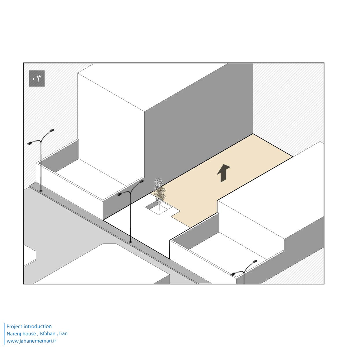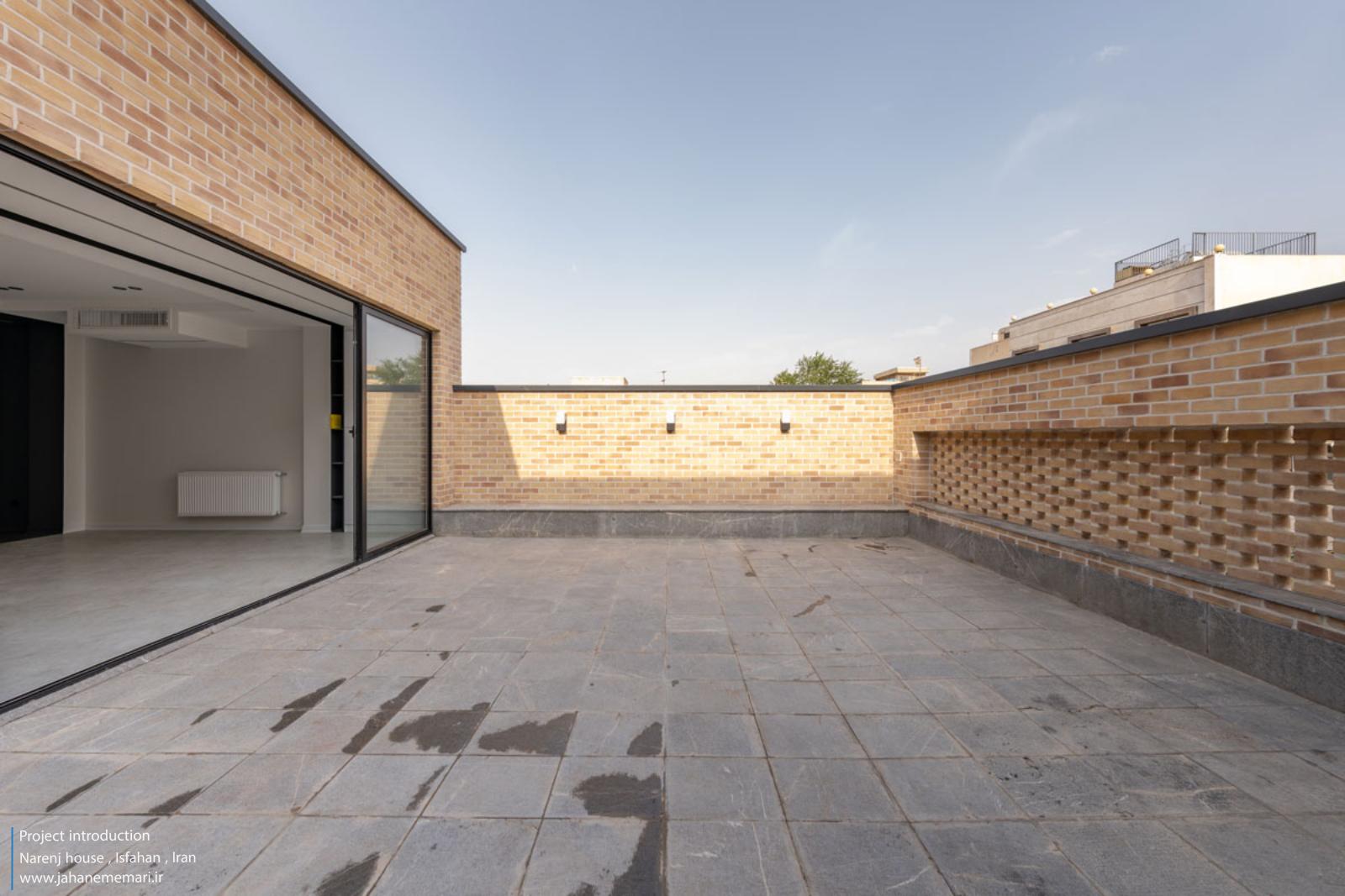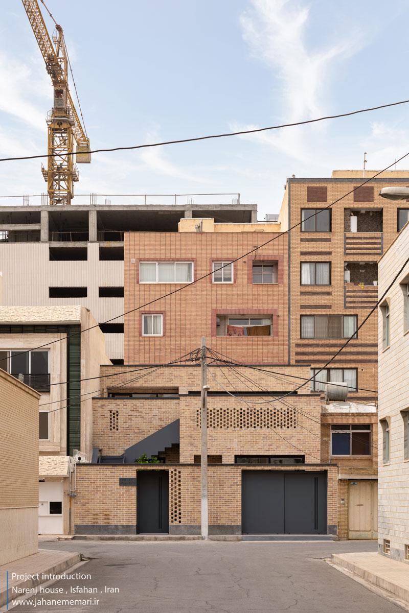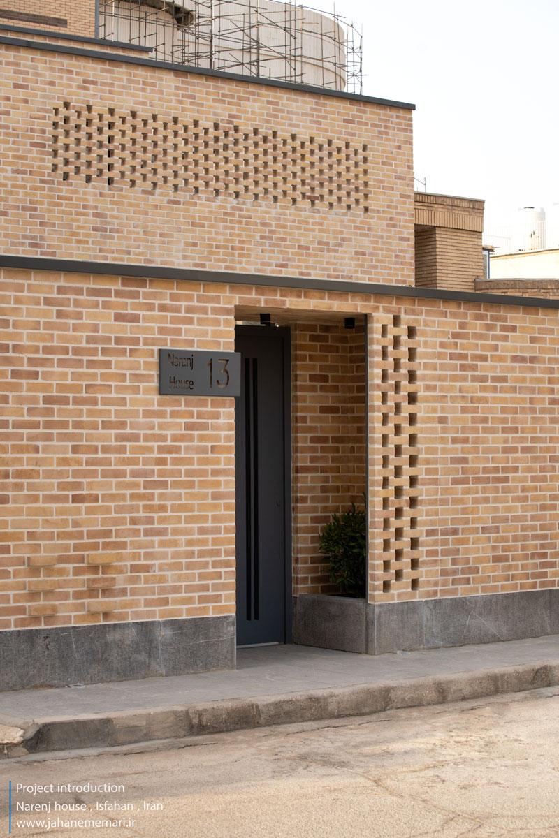 خانه ایست برای اعتراض! اعتراض به اوضاع و احوال شهرهای کوچک امروزی با جداره های ناهمگن و بی ربط در بافت و بدنه ها که هر یک، ساز خود را میزنند. خانه نارنج، پاسخی است به وضعیت موجود. حجمی آجرپوش که دیوارهایش با بافتی زبر و جزئیاتی ساده، حریمی آرام اما قاطع برای درون و بیرون، میسازد. پشت این مرز، فضایی قرار دارد که بر اساس شیوه زیست کارفرما، طراحی شده است. برای جلوگیری از صلب بودن حجم، دریچه ها و روزنه هایی خالی شد تا هم از بیرون دیده نشویم و هم گاهی از آن ها سرک بکشیم و نسیمی ملایم در آن، بوزد.