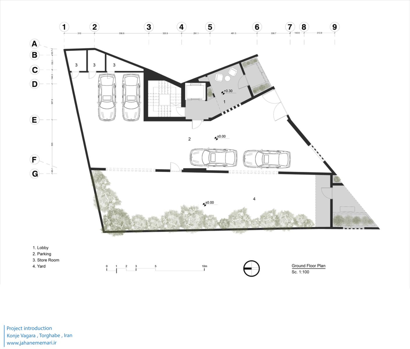 سفارش این اثر، در ابتدا با یک درخواست متضاد “سه گانه” توسط کارفرما به دفتر ما مراجعه شد. سفارش‌دهنده تشریح کرد که یک آپارتمان برای زندگی خودش، پسرش، و دخترش نیاز دارد و در ادامه تاکید داشت که حدود دو و یا سه دهه قبل آن‌ها در خانه‌های نیمه ویلایی “حیاط‌دار” زندگی کرده‌اند.