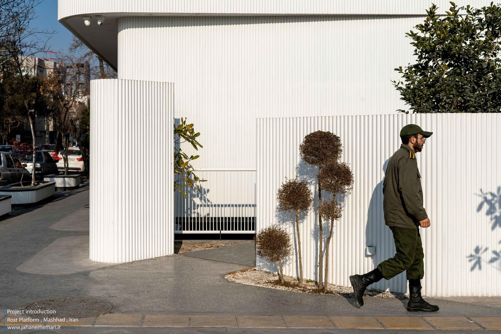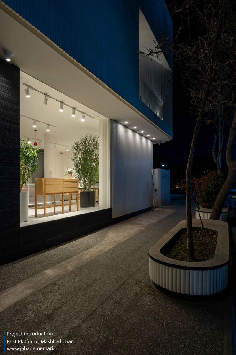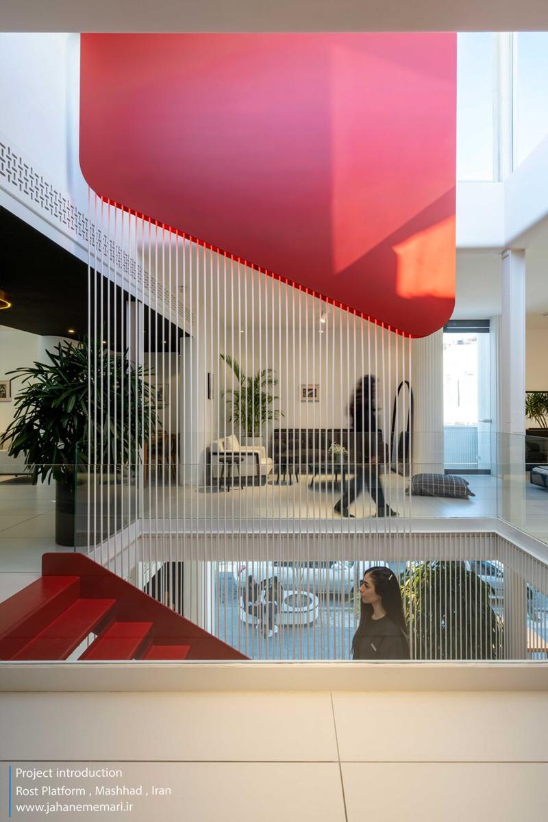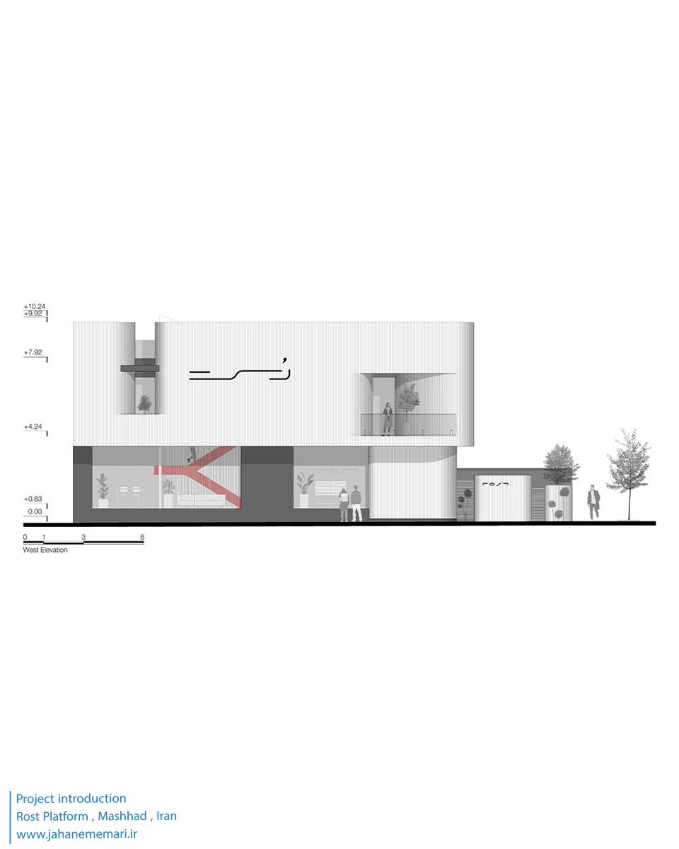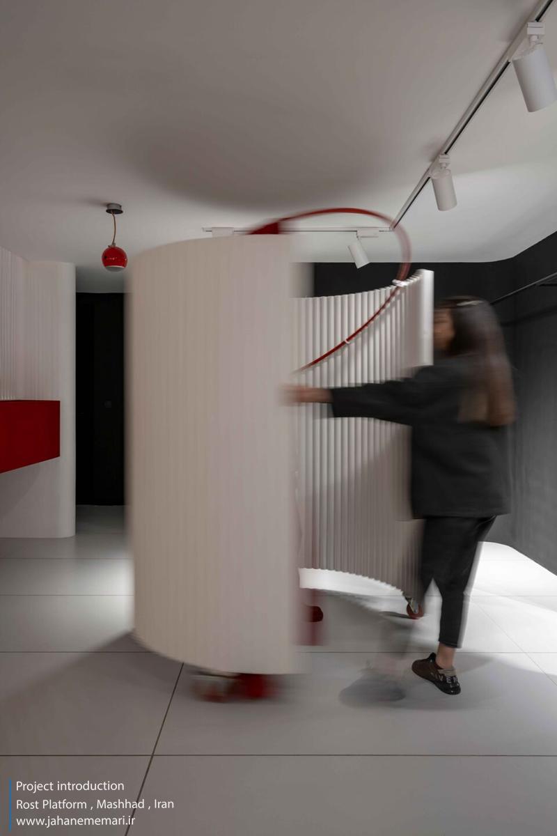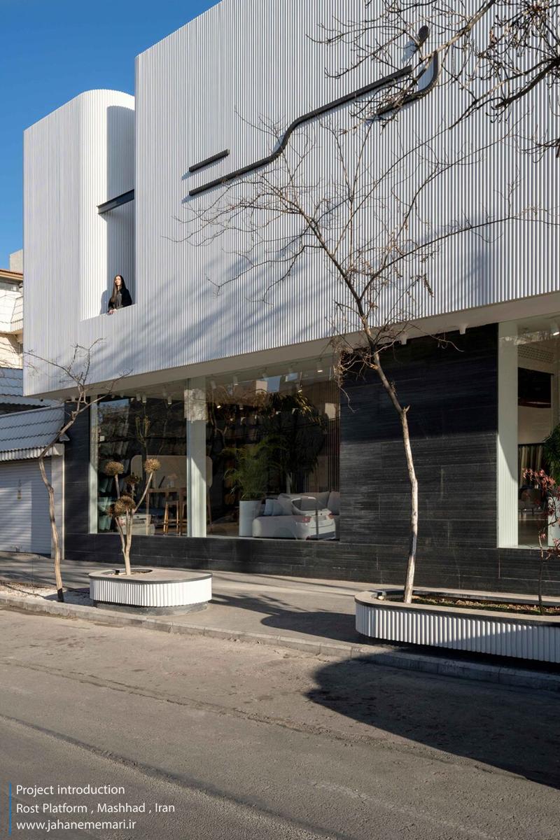 پلتفرم رُست خود را از ساختمانهای تجاری اطراف با سادگی و حذف اضافات متمایز میکند و موجب میشود که مخاطبان بهطور دقیقتری با آن درگیر شوند. این رویکرد نهتنها نقش اجتماعی پروژه را در شهر تقویت میکند بلکه فراتر از یک نمایشگاه معمولی قرار میگیرد. با فراهم کردن فضایی برای رویدادهای فرهنگی، پروژه خود را بهعنوان یک پلتفرم—فضایی پویا و در حال تحول که فراتر از کارکرد تجاری خود عمل میکند—تعریف میکند.