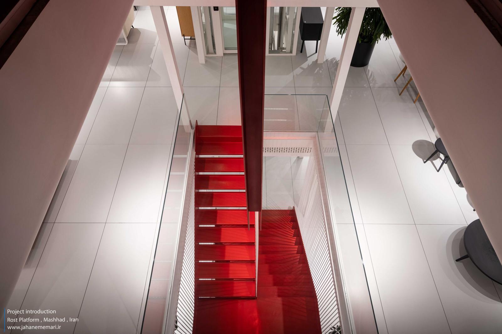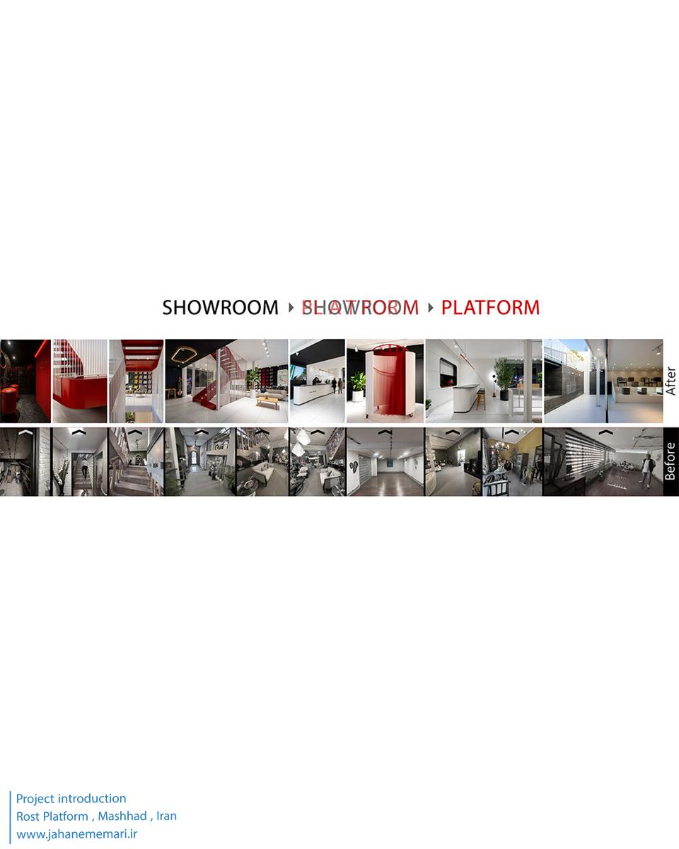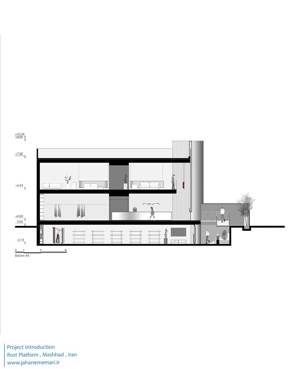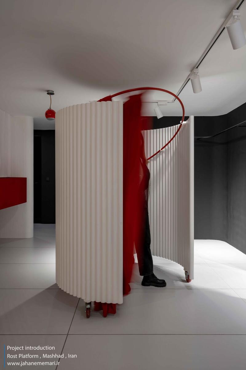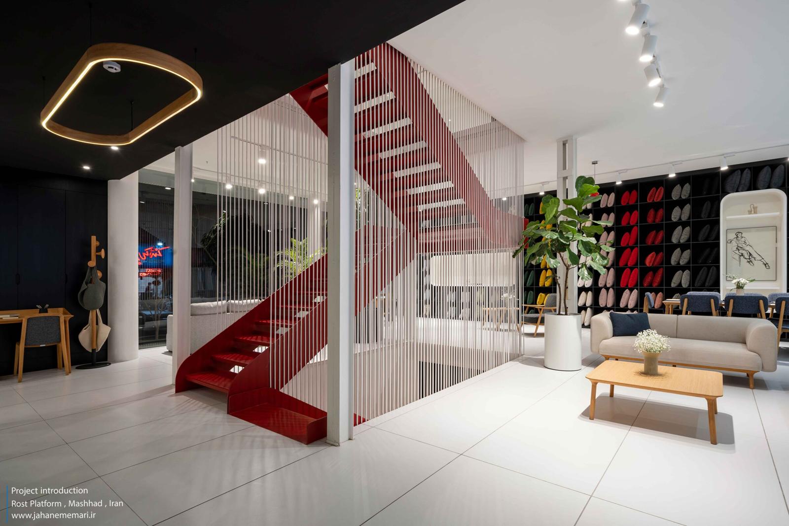 پلتفرم رُست خود را از ساختمانهای تجاری اطراف با سادگی و حذف اضافات متمایز میکند و موجب میشود که مخاطبان بهطور دقیقتری با آن درگیر شوند. این رویکرد نهتنها نقش اجتماعی پروژه را در شهر تقویت میکند بلکه فراتر از یک نمایشگاه معمولی قرار میگیرد. با فراهم کردن فضایی برای رویدادهای فرهنگی، پروژه خود را بهعنوان یک پلتفرم—فضایی پویا و در حال تحول که فراتر از کارکرد تجاری خود عمل میکند—تعریف میکند.