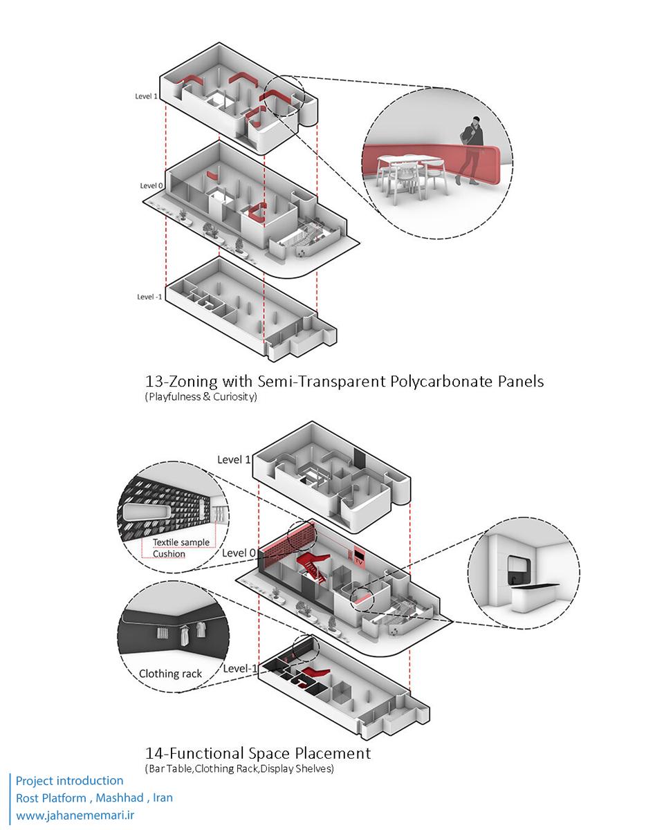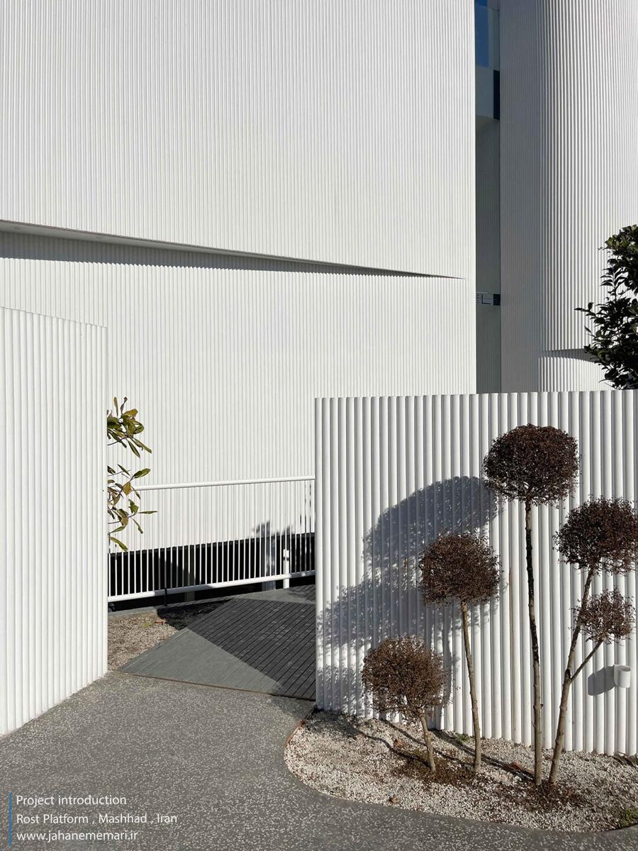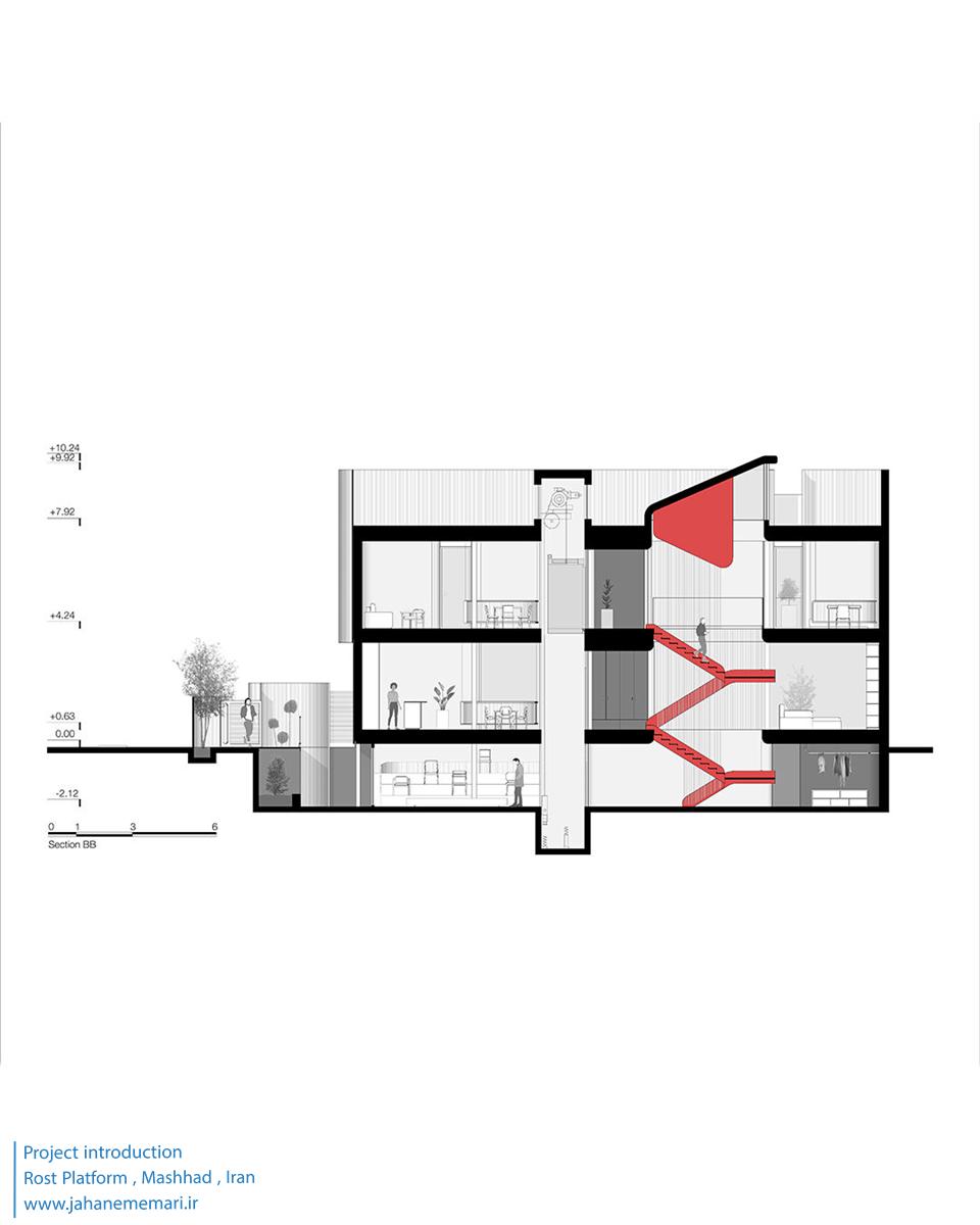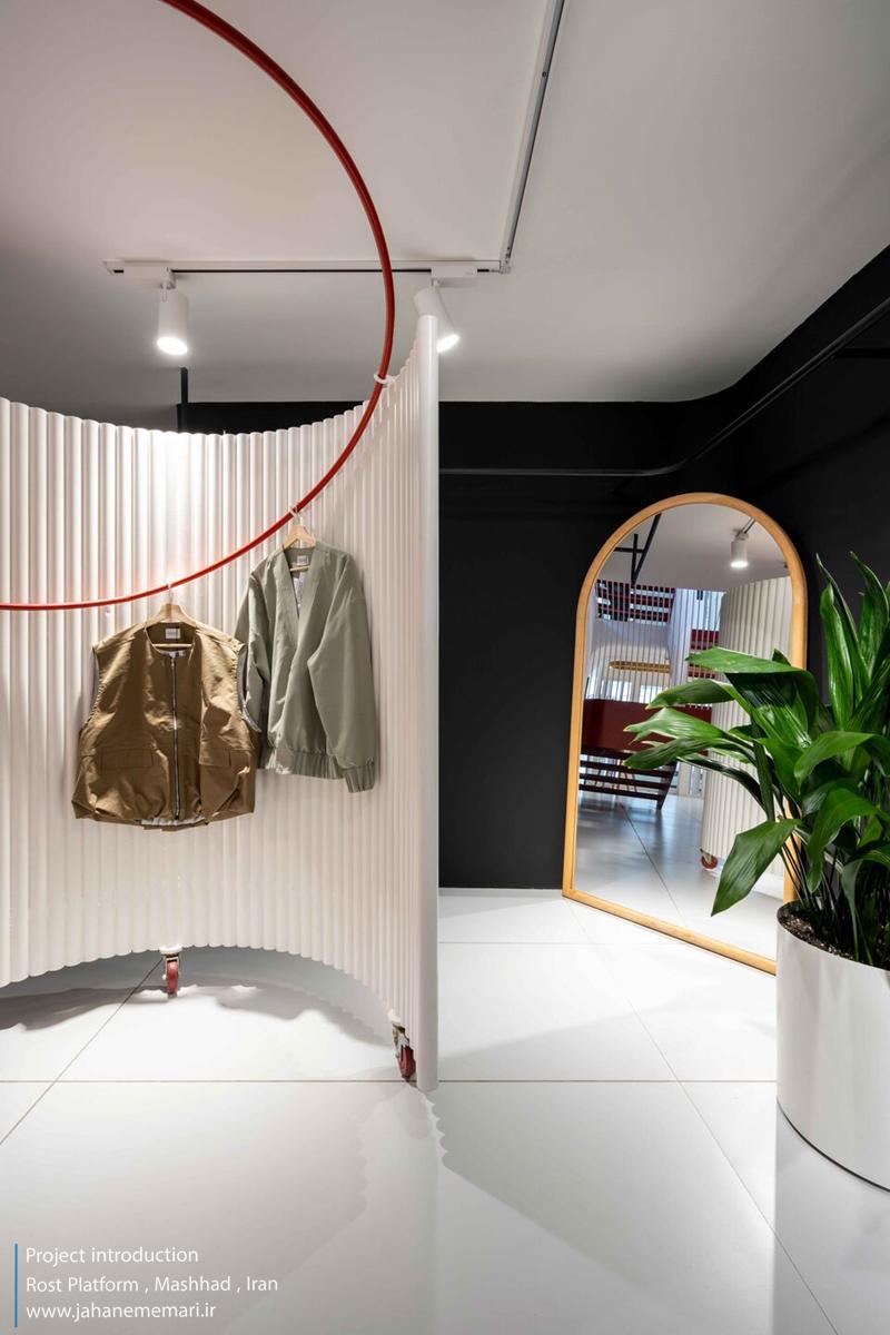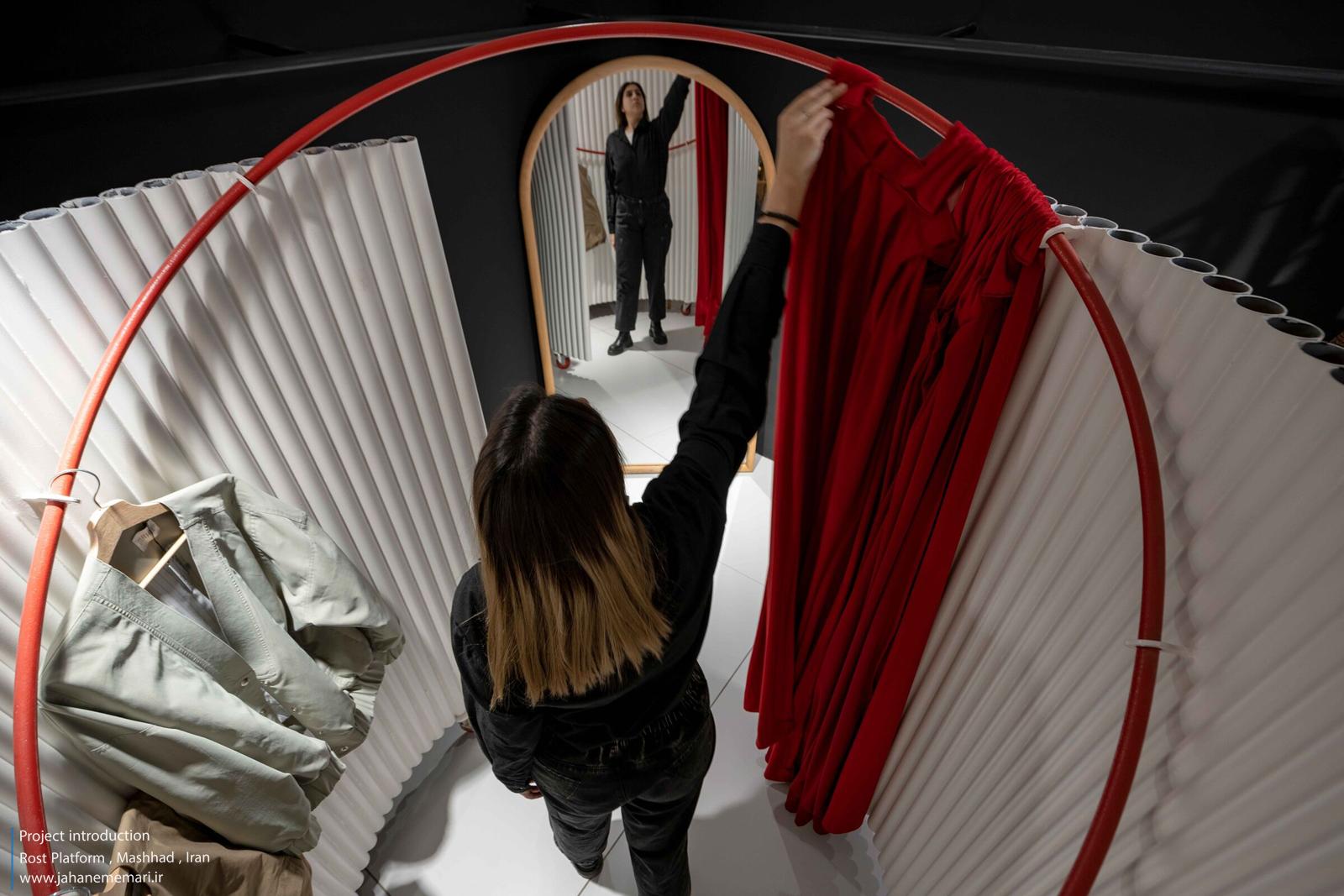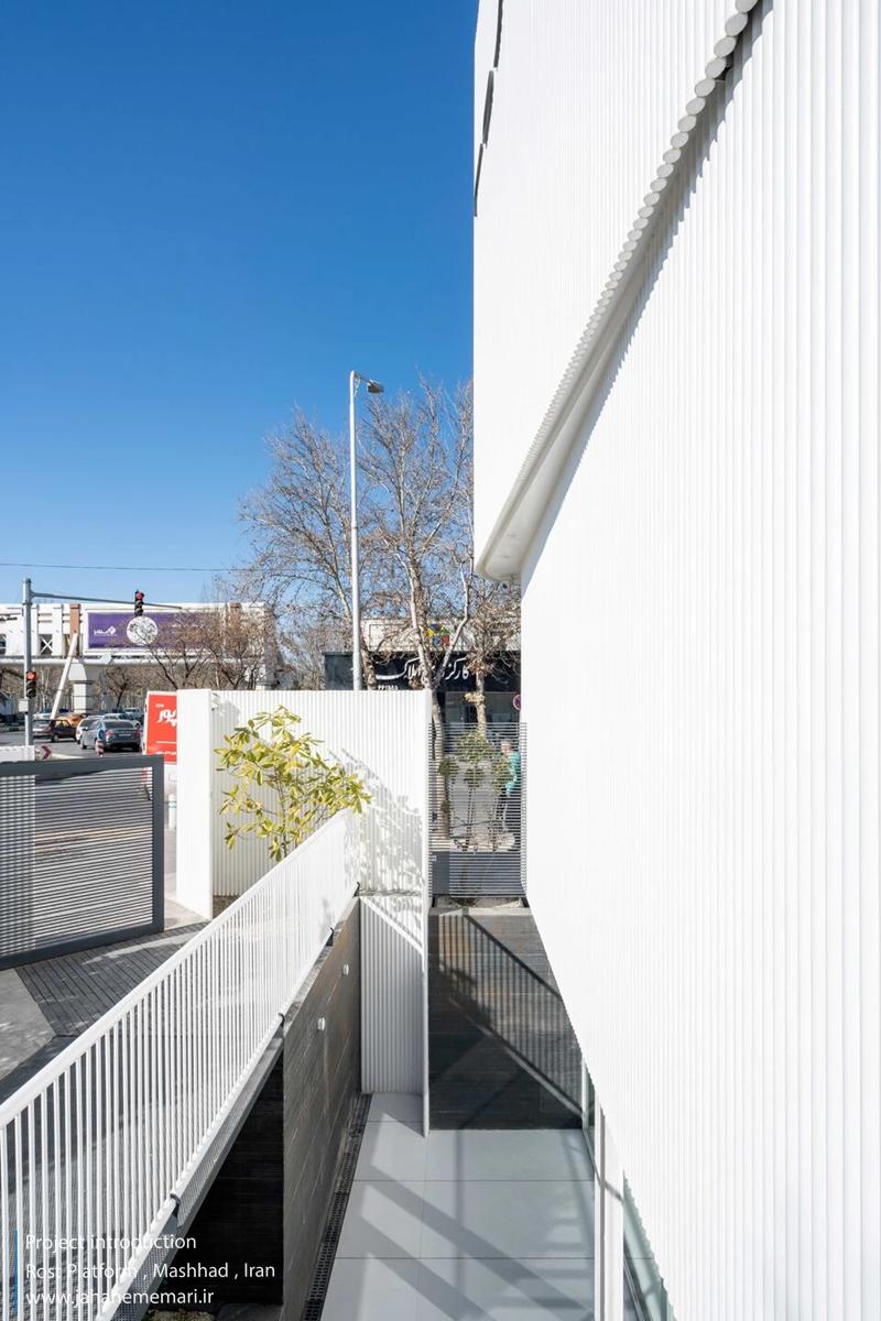 پلتفرم رُست خود را از ساختمانهای تجاری اطراف با سادگی و حذف اضافات متمایز میکند و موجب میشود که مخاطبان بهطور دقیقتری با آن درگیر شوند. این رویکرد نهتنها نقش اجتماعی پروژه را در شهر تقویت میکند بلکه فراتر از یک نمایشگاه معمولی قرار میگیرد. با فراهم کردن فضایی برای رویدادهای فرهنگی، پروژه خود را بهعنوان یک پلتفرم—فضایی پویا و در حال تحول که فراتر از کارکرد تجاری خود عمل میکند—تعریف میکند.