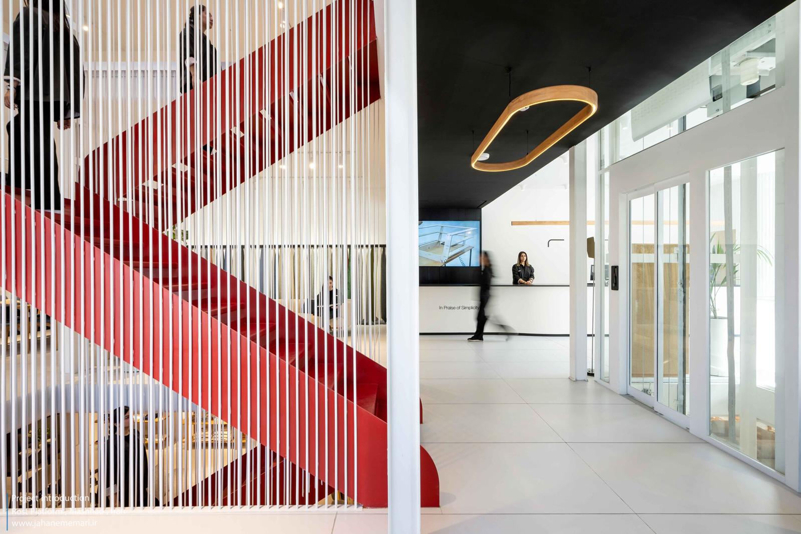 با این حال، ساختار اصلی—که شامل یک چیدمان فشرده و سقفهای پایین بود—منجر به ایجاد فضاهایی تکهتکه میشد که با قابلیت انطباق مشکل داشتند. برای رفع این مشکل، تقویتهای ساختاری اعمال شد و بخشهایی از دیوارها و سقف برداشته شد تا محیطی بازتر و انعطافپذیرتر ایجاد گردد. در جایی که تفکیک فضایی لازم بود، پنلهای پلیکربنات معلق به فضا اضافه شد. این عناصر نیمهشفاف مرزهایی تعریف میکنند در حالی که پیوستگی فضایی را حفظ کرده و نگاههای انتزاعی از فعالیتهای مجاور ایجاد میکنند و حس کنجکاوی و بازیگوشی را برمیانگیزند.
