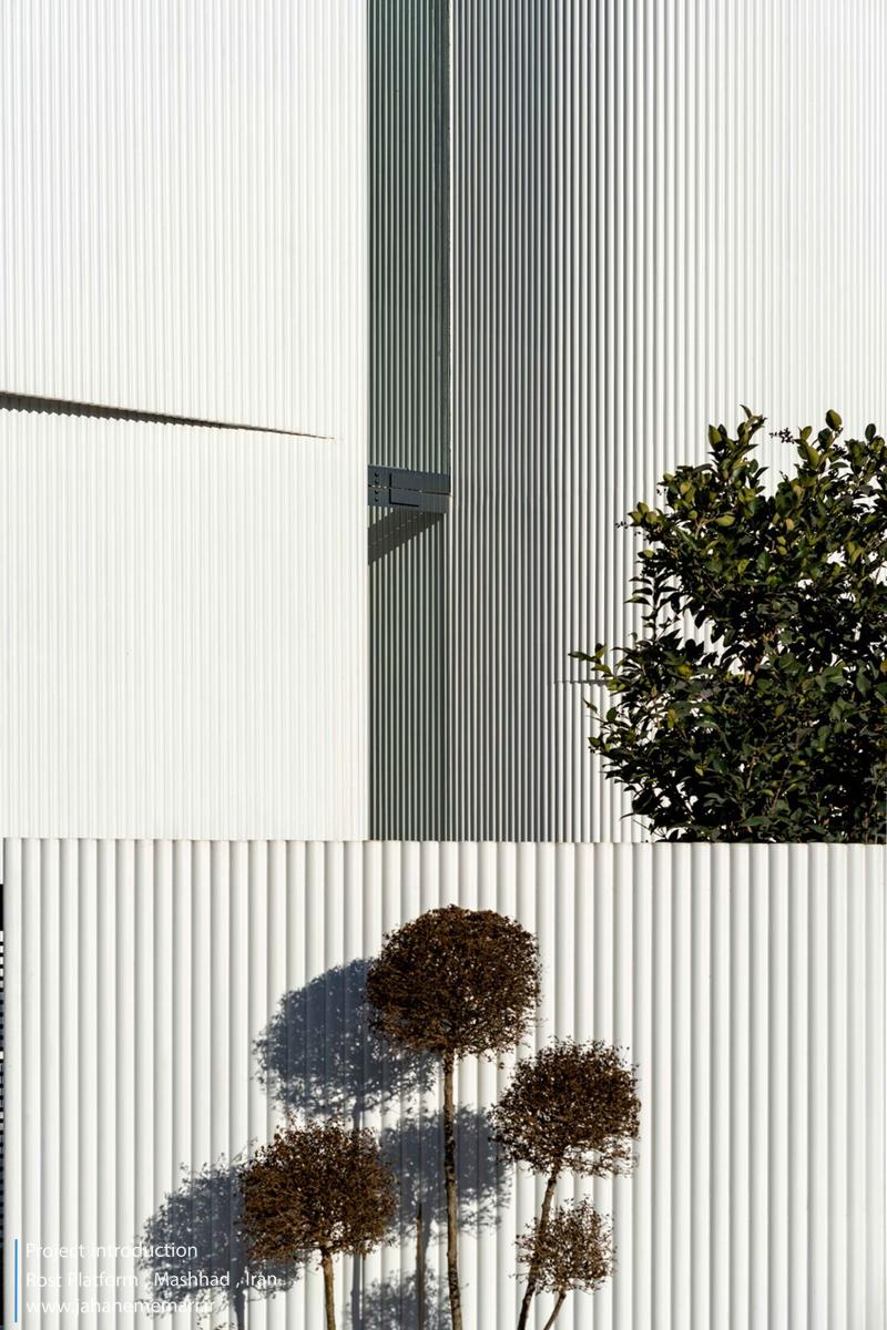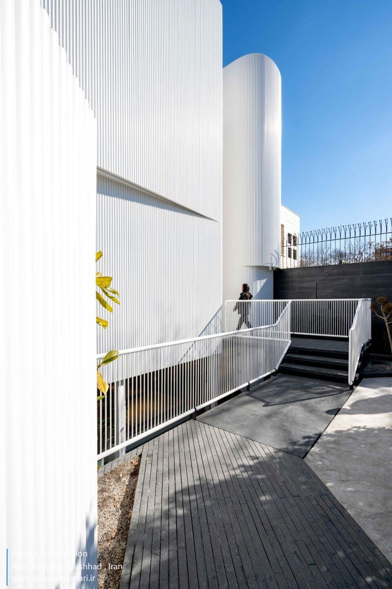 در نمای خارجی، بازشوهایی با طراحی دقیق نمایانگر دیدهایی از باغ ملکآباد هستند که همزمان اجازه میدهند تا برشهای کنترلشدهای از نور طبیعی وارد فضا شوند. این بازشوها بهعنوان دعوتهای ظریفی برای عبورکنندگان عمل میکنند و علاقهمندی به کشف فضای داخلی را برمیانگیزند.