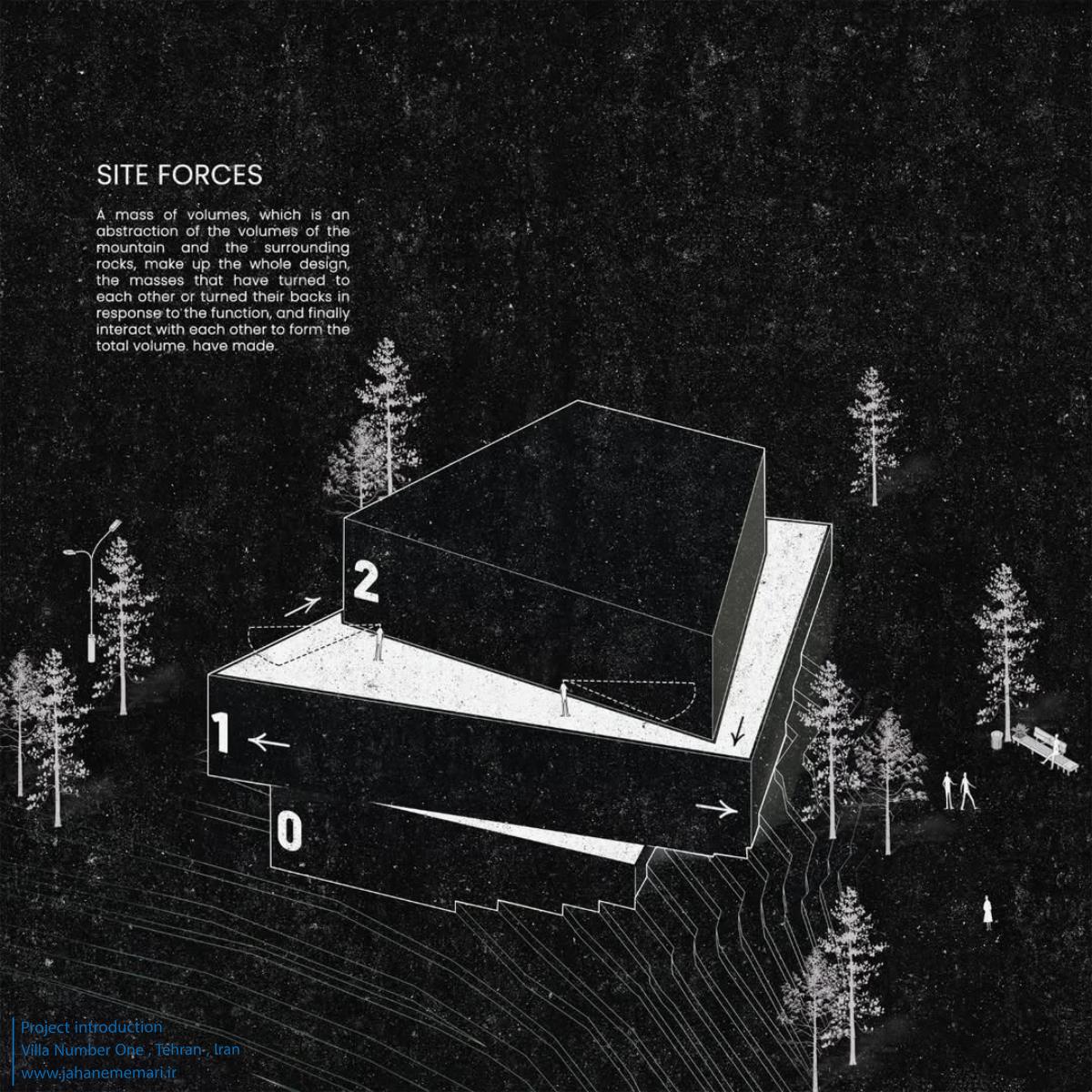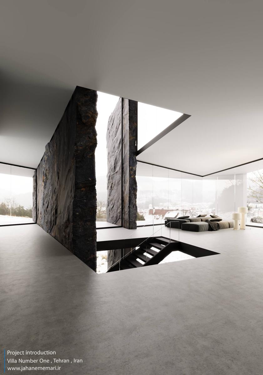 پروژه ویلای شماره یک، تلاشی ست در راستای هماهنگی با زمینه ، ارتباطی دو سویه با عناصر طبیعی موجود در بستر پروژه : رود بالا دست، کوه های پیرامون و مناظر خیرکننده طبیعی.