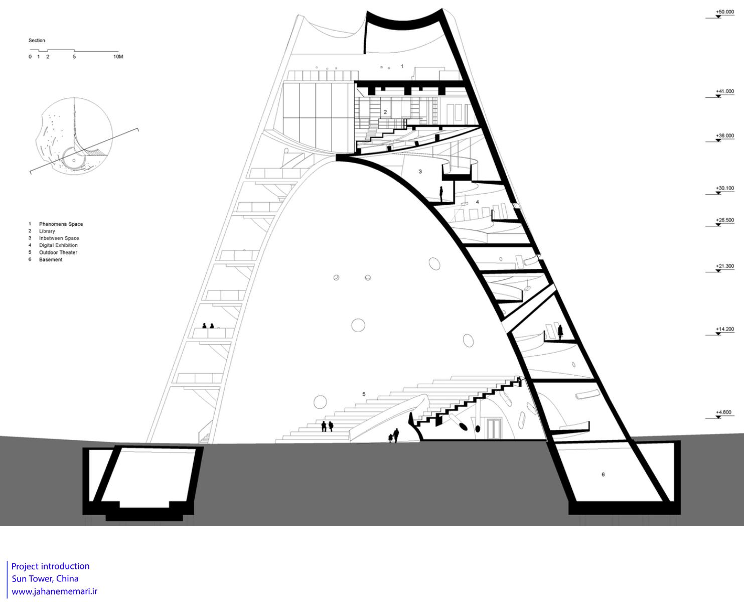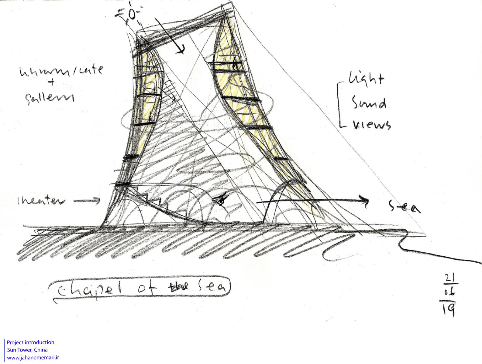 کشفیات باستانشناسی نشان میدهد که یانتای یکی از نخستین مکانهایی در چین بوده است که در آن فرهنگ پرستش خورشید در دوران باستان پدیدار شده است. دفتر اُوپن، برج خورشید را بهمنظور درک و ستایش پدیدههای طبیعی طراحی کرده تا پیوند انسان با نیروی روحانی طبیعت را دوباره برقرار سازد، در عین حال که امکانات فرهنگی و اجتماعی مورد نیاز این منطقهٔ شهری نوظهور را فراهم میآورد. فضاهای نمایش دیجیتال و کتابخانه، با هدف ایجاد بستری برای گفتوگو دربارهٔ همکاری در جوامع ساحلی و ارتقای آگاهی زیستمحیطی طراحی شدهاند.