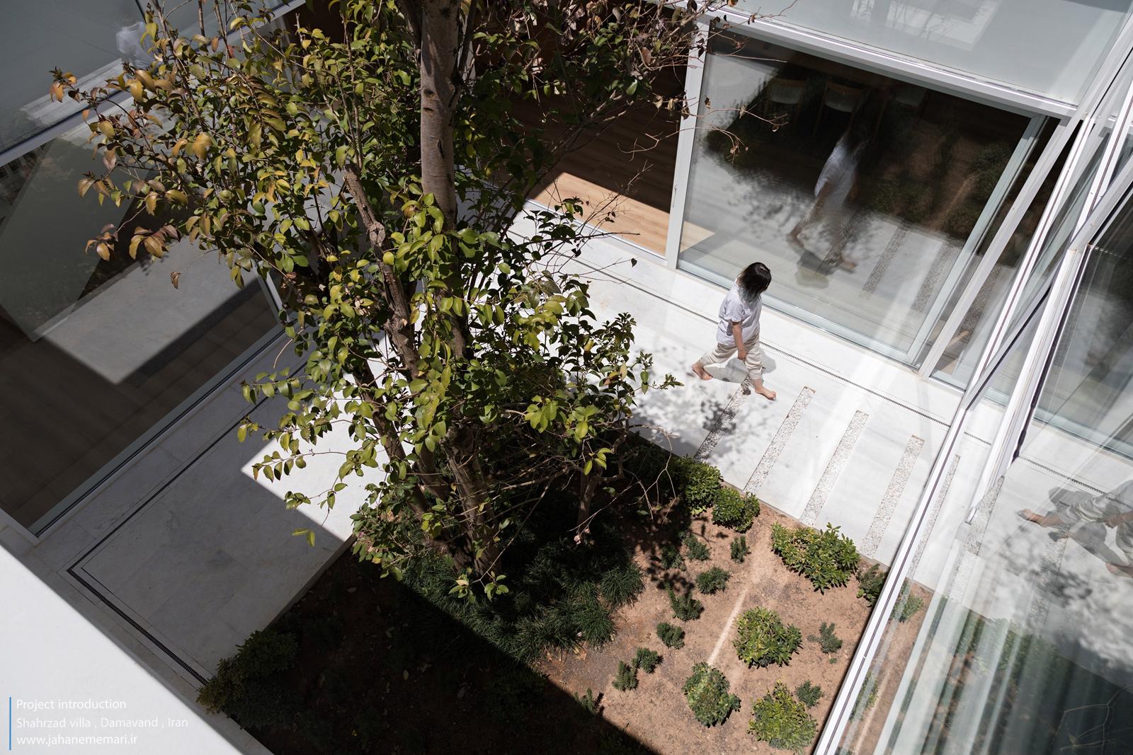 با الهام از گونه شناسی حیاط مرکزی، ما در پی دعوت نور به داخل بودیم. این حیاط فقط منبع روشنایی نیست، بلکه به عنصر اصلی سازماندهی ترکیب فضایی پروژه تبدیل می شود و ارتباطی پویا بین فضای داخلی و خارجی در ارتفاعات مختلف ایجاد می کند. وجود فضای سبز در قلب سازه نه تنها به تهویه طبیعی و نور روز در طول فصول کمک می کند، بلکه تجربیات فضایی متنوعی را در هر گوشه از خانه ارائه می دهد.