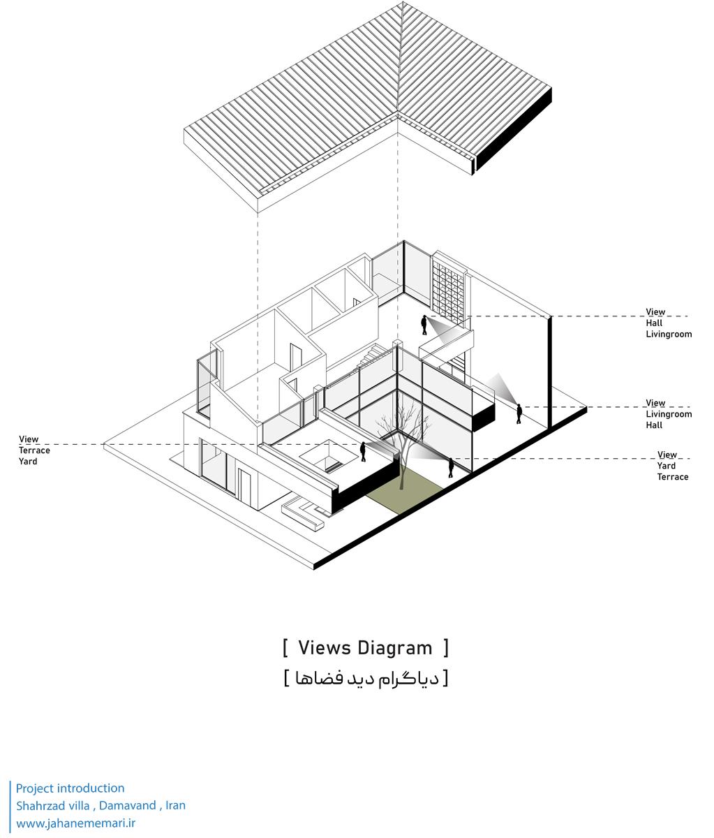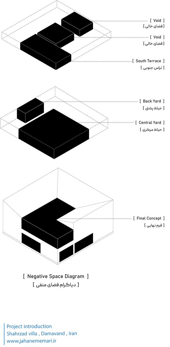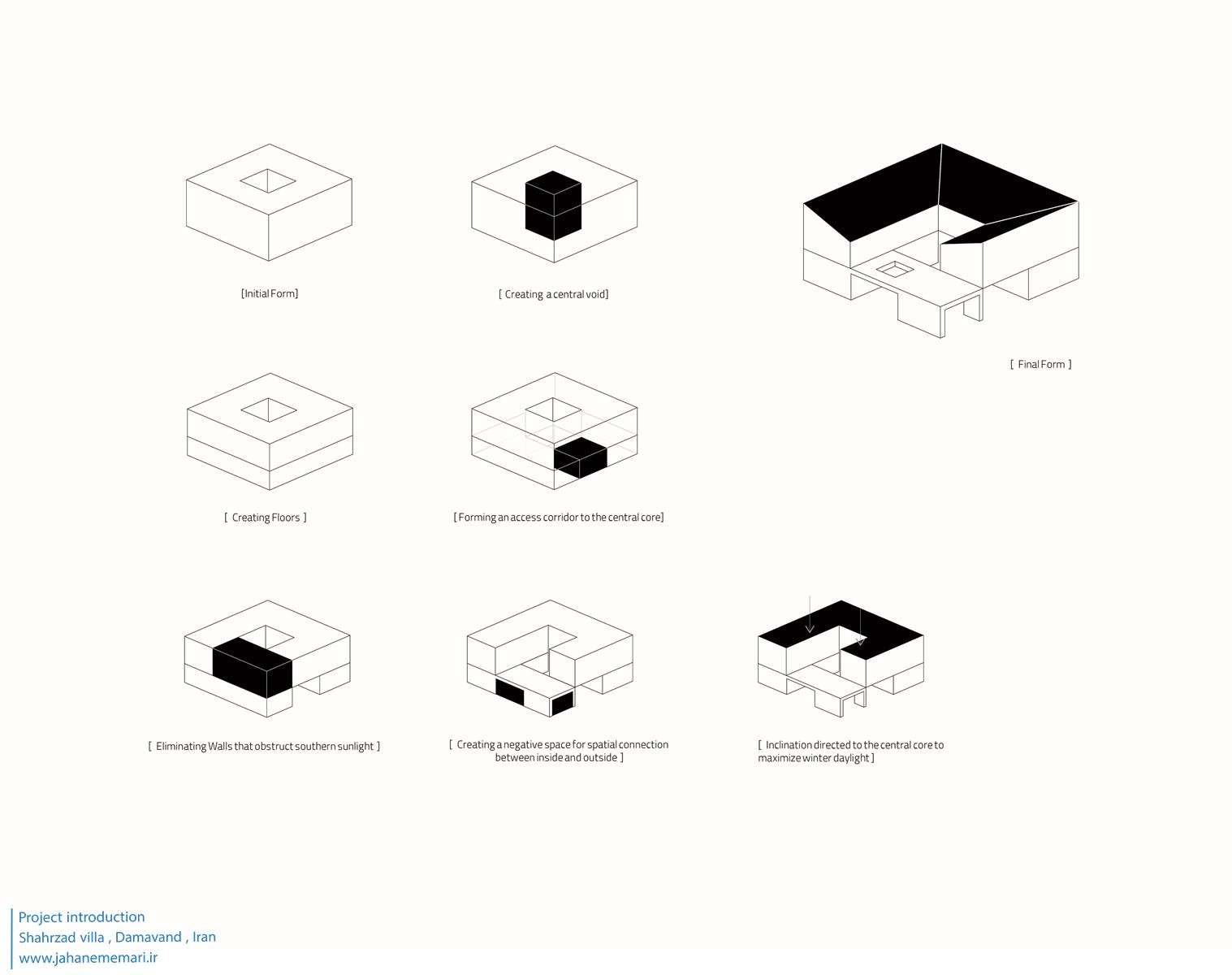 این پروژه در زمینی به مساحت ۱۶۵۰ متر مربع در امتداد شرق-غرب در دشت سیدآباد، دماوند واقع شده است. ایده ی معماری ویلا شهرزاد از تعامل بین محدودیت های سایت و تمایل به ایجاد فضایی سرشار از نور و سرزندگی پدید آمده است. در این پروژه، نور صرفاً با ویژگی های فیزیکی یا استانداردهای عملکردی اولیه تعریف نمی شود – بلکه از این جنبه ها فراتر می رود و کیفیتی ناملموس را مجسم می کند. نور، به معنای کیفی، نمایانگر طلوع و غروب خورشید، زمان و گذر آن است که همگی در زیر سایه ها و نیم سایه های معماری و طبیعت به عنوان مظاهر زندگی تفسیر می شوند.