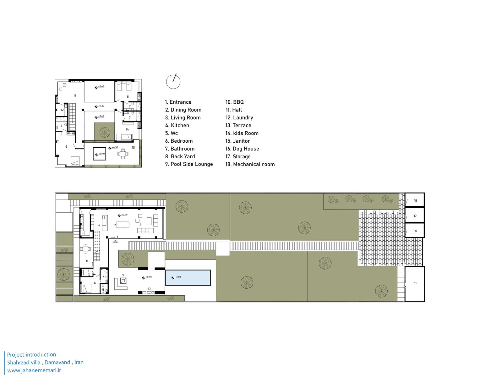 در نگاه اول، خطوط و فرم اولیه ویلا شبیه سازه های کلاسیک و متقارن است. با این حال، در ترکیب فضایی و پلان آن، این تقارن به تعادلی سیال با رویکردی معاصر تبدیل می شود. حجم مربع شکل در مرکز سایت قرار دارد و محور مرکزی و حیاط آن فضایی پویا و روایی ایجاد می کنند – فضایی که در آن ساکنان با هر حرکت با ویژگی های فضایی تازه ای روبرو می شوند.