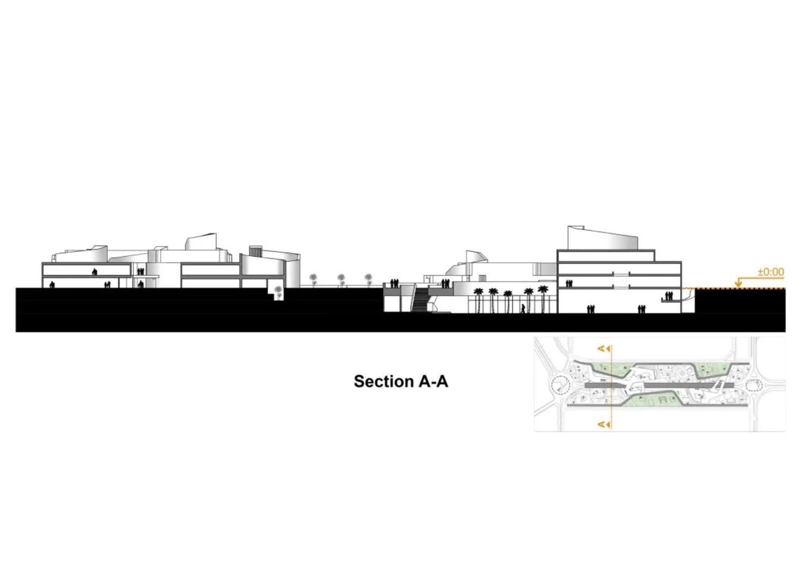 فرم خطی سایت پروژه، بستر مناسبی برای بازخوانی تیپولوژی بازار ایرانی فراهم می‌آورد—الگویی ریشه‌دار در حافظه‌ی شهری این اقلیم. طراحی این محور با الهام مستقیم از بازار تاریخی کرمان صورت گرفته است؛ الگویی که یکی از کهن‌ترین و کامل‌ترین مصادیق این گونه‌ی شهری در معماری ایران محسوب می‌شود.