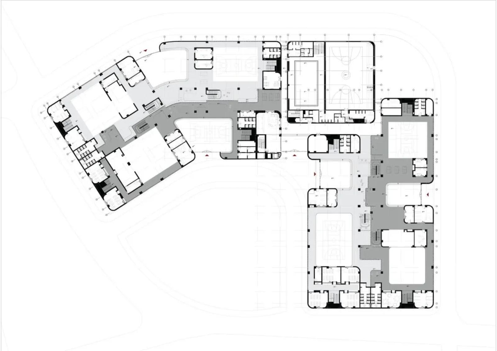 کتابخانه‌ها و کارگاه‌ها بین مدارس ابتدایی و متوسطه مشترک‌اند تا همکاری بین سطوح آموزشی تقویت شود. ارتباطات بصری میان فضاها با حیاط‌های مجاور افزایش یافته است. طراحی انعطاف‌پذیر با مبلمان متحرک و فضاهای نیمه‌باز، امکان سناریوهای یادگیری پویا را فراهم می‌کند.