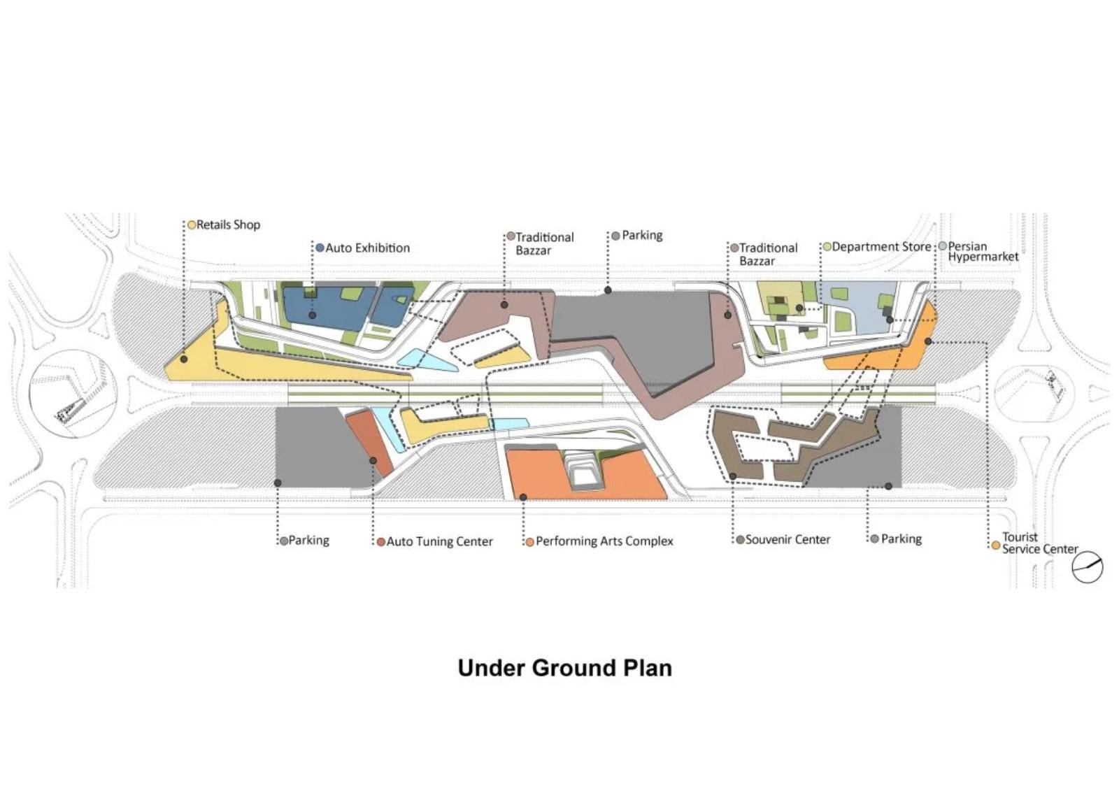 فرم خطی سایت پروژه، بستر مناسبی برای بازخوانی تیپولوژی بازار ایرانی فراهم می‌آورد—الگویی ریشه‌دار در حافظه‌ی شهری این اقلیم. طراحی این محور با الهام مستقیم از بازار تاریخی کرمان صورت گرفته است؛ الگویی که یکی از کهن‌ترین و کامل‌ترین مصادیق این گونه‌ی شهری در معماری ایران محسوب می‌شود.