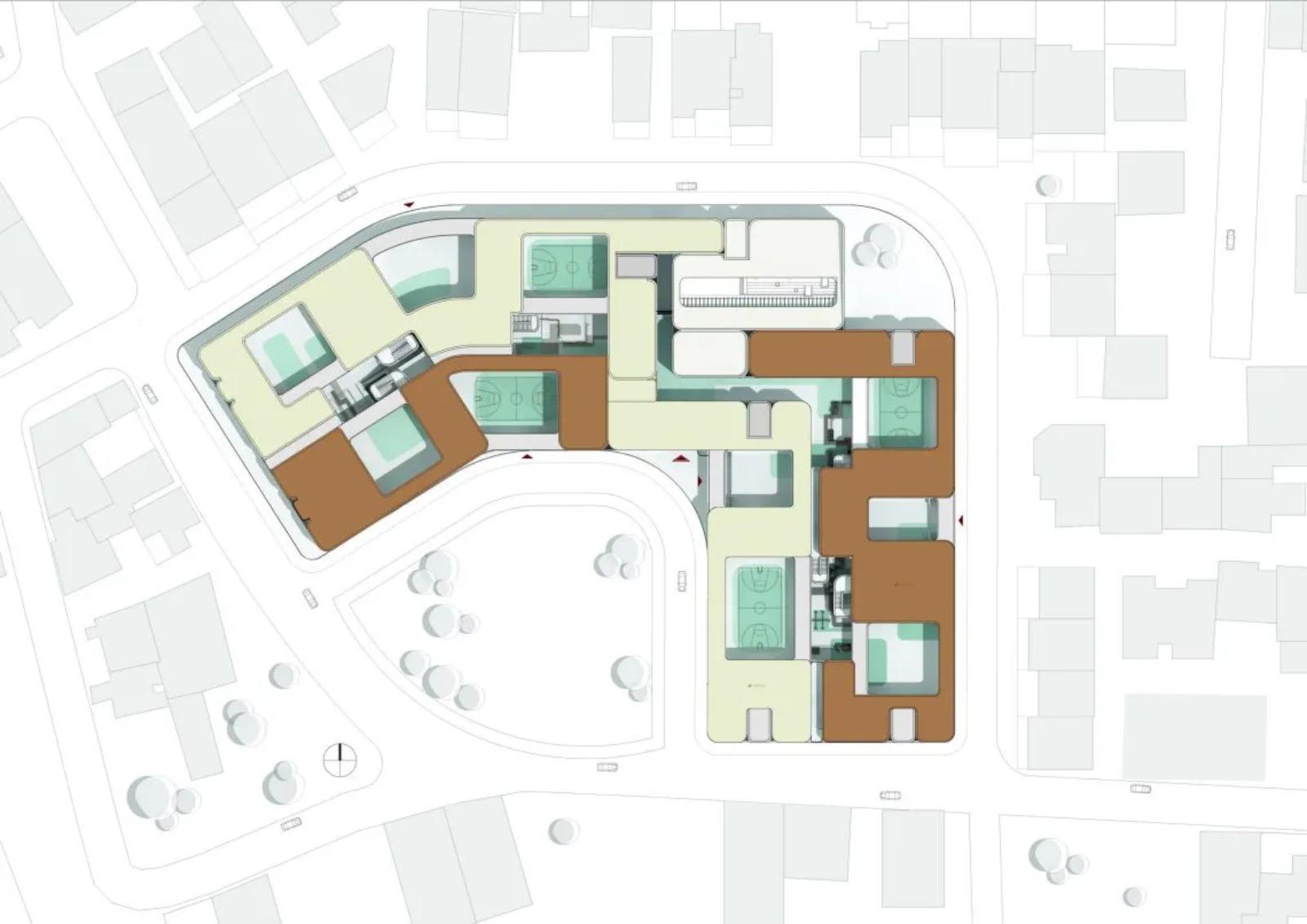 کتابخانه‌ها و کارگاه‌ها بین مدارس ابتدایی و متوسطه مشترک‌اند تا همکاری بین سطوح آموزشی تقویت شود. ارتباطات بصری میان فضاها با حیاط‌های مجاور افزایش یافته است. طراحی انعطاف‌پذیر با مبلمان متحرک و فضاهای نیمه‌باز، امکان سناریوهای یادگیری پویا را فراهم می‌کند.