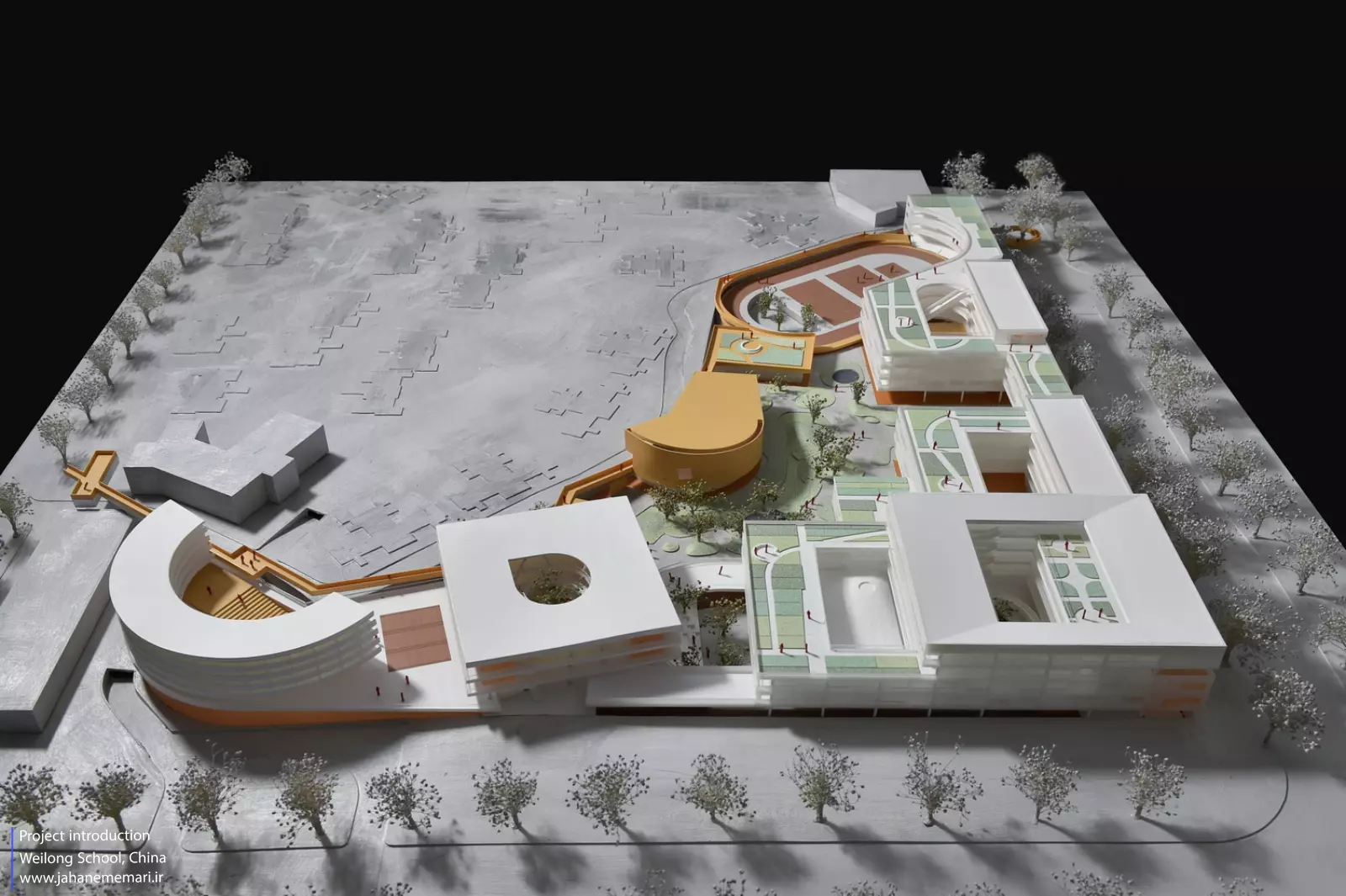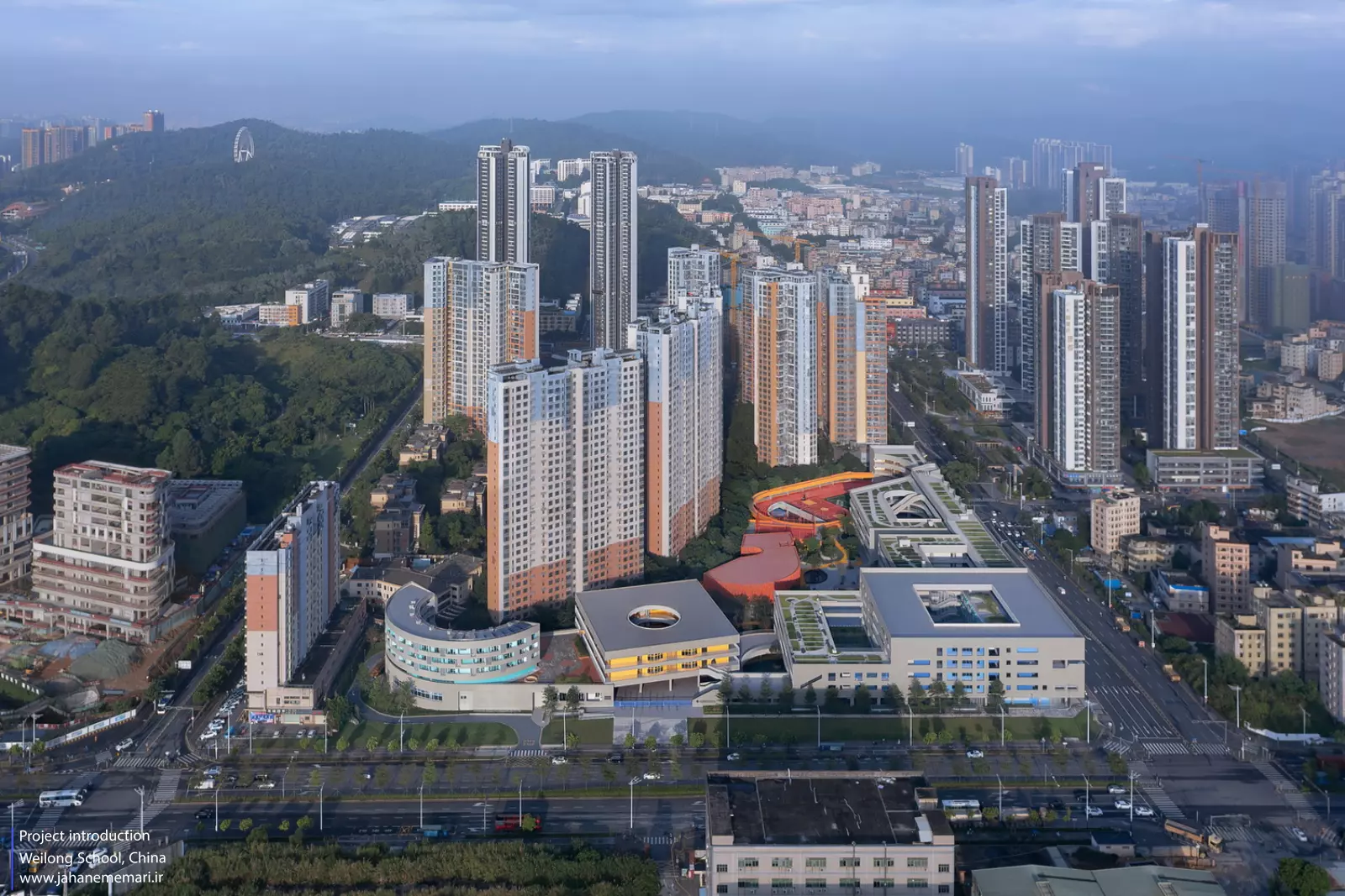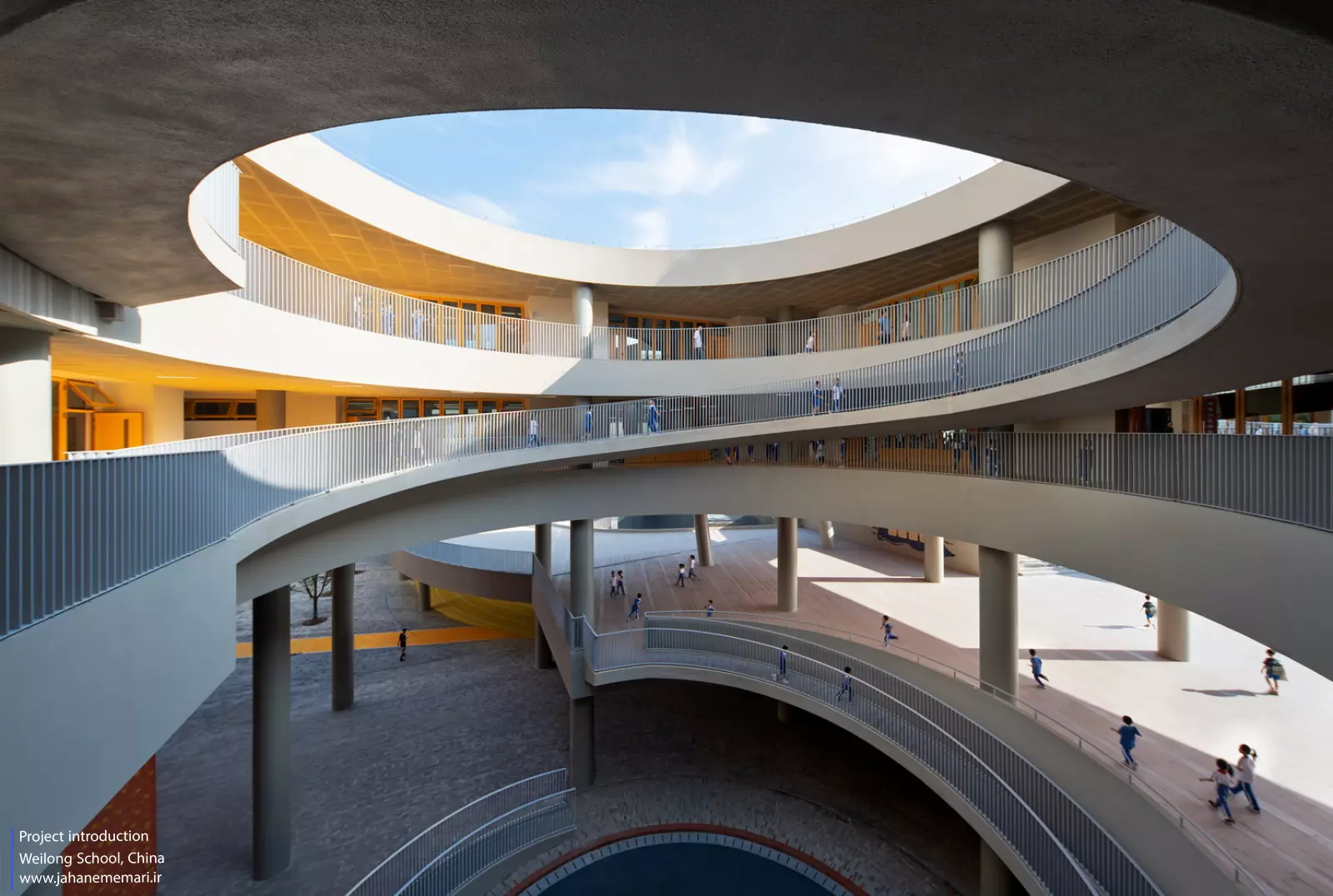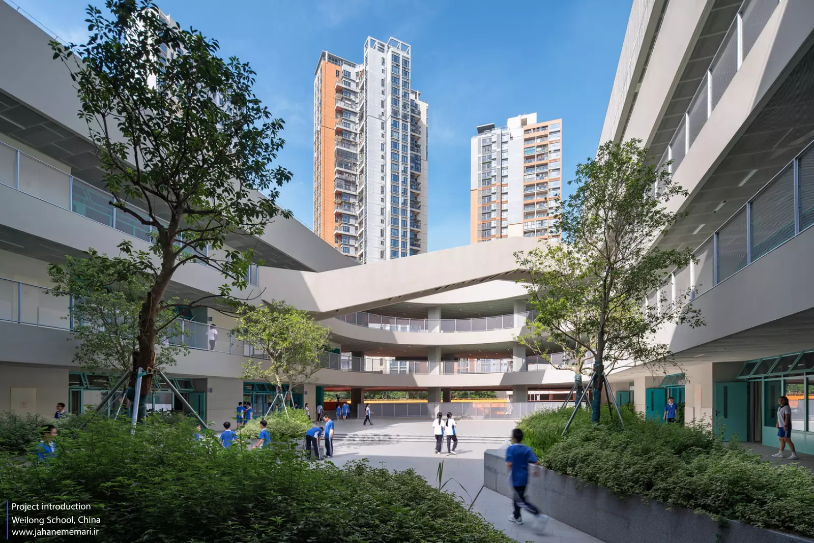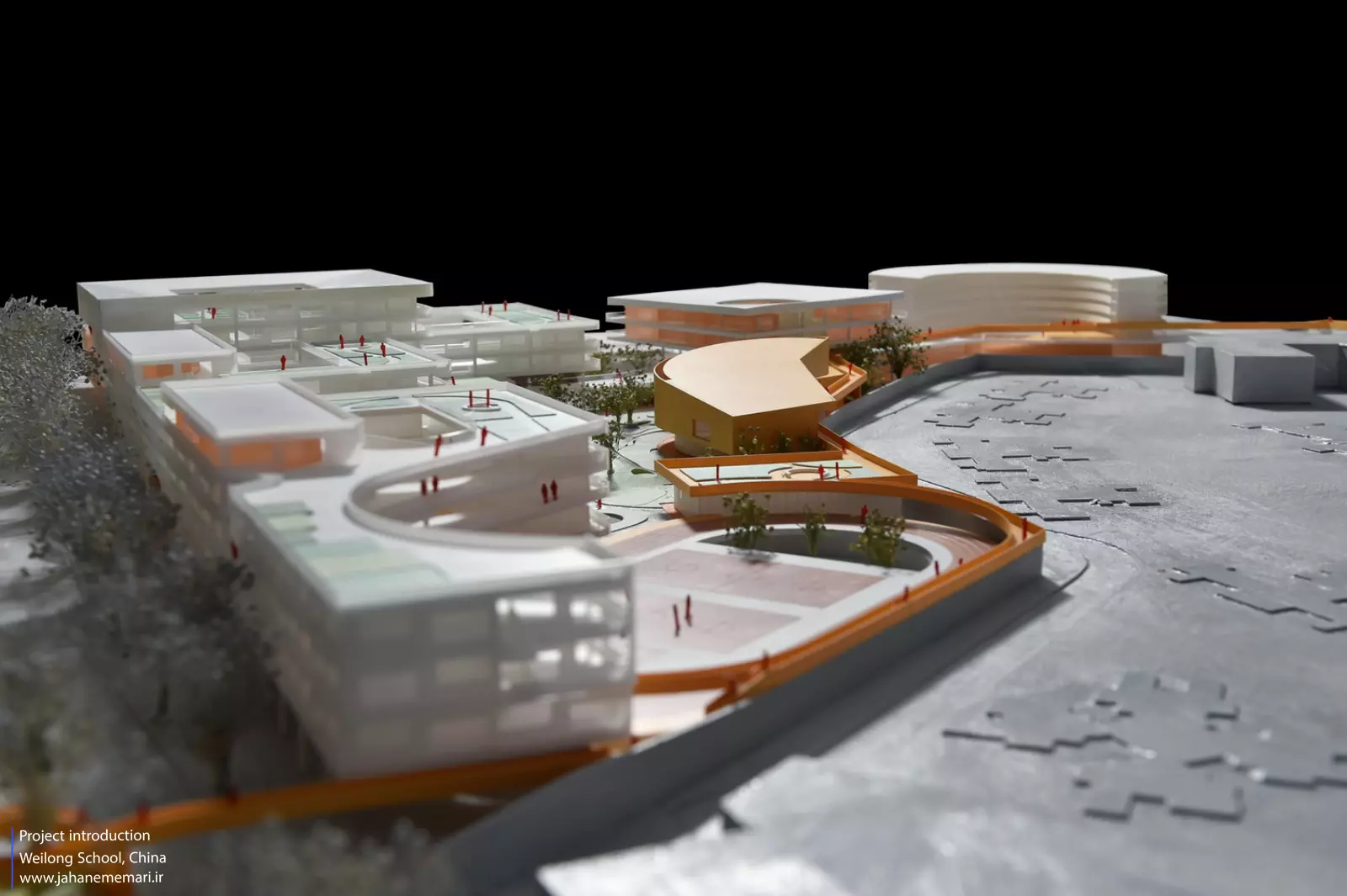 فضاهای عملکردی مشترک در امتداد لبه‌های سایت قرار گرفته‌اند؛ جبههٔ همکف ستون‌دار رو به خیابان به‌سوی شهر گشوده است و گذرگاه‌ها به سمت جامعه امتداد می‌یابند و واجد یک مرز ترکیبی میان مدرسه و محله می‌شوند. طراحی، مدل فضایی خلاقانهٔ «واحدهای مدرسه + خوشه‌های راهرو» را معرفی می‌کند؛ سیستمی که ساختار حیاط‌محور خانه‌های حصاردار را به چند واحد مستقل آموزشی تفکیک می‌کند، به‌گونه‌ای که هر واحد متناسب با مرحلهٔ یادگیری شکل گرفته است.