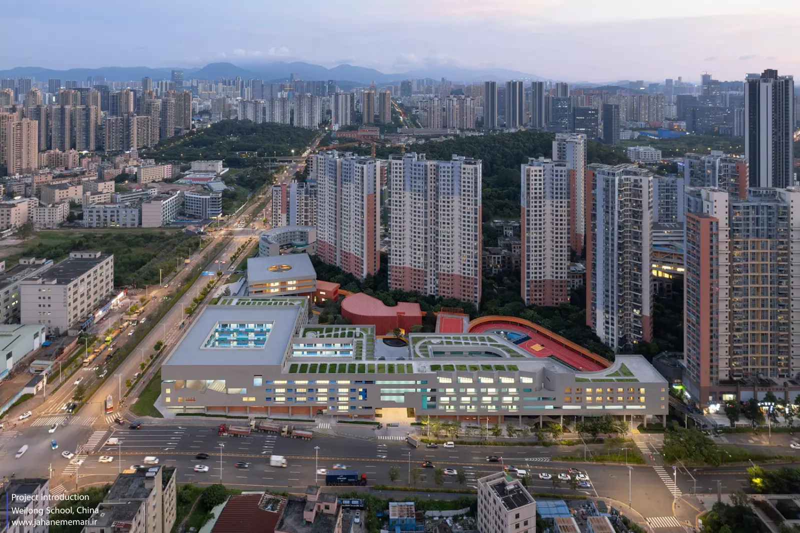 «مدرسه ویلُنگ» سازمان‌دهی حجمی افقی و پیوستهٔ الهام‌گرفته از خانه‌های حصاردار هاکا را در پاسخ به محیط شهری پیرامون ــ که بیش از حد بزرگ‌مقیاس و عمودی است ــ اتخاذ می‌کند. در پیرامون ساختمان، تراکم به‌صورت لایه‌لایه در جرمی پیوسته سامان یافته و امکان می‌دهد فضای داخلی مدرسه به حیاط‌هایی باغ‌مانند، یادآور منظر لینگ‌نان، گشوده شود.
