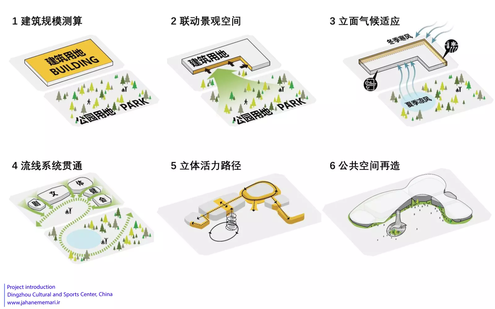 مرکز فرهنگی و ورزشی دینگژو پلی است میان گذشته و آینده، طبیعت و شهر. این مجموعه فضایی عمومی، پویا و شاعرانه برای شهروندان دینگژو فراهم میکند و بهطور جامع از تحول و توسعه پایدار شهر پشتیبانی میکند.