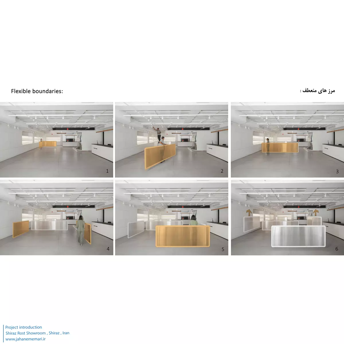 اغلب نمایشگاههای مبلمان، در حال حاضر یا فضاهایی یکدست هستند که بین زونهای سرویس مبلمان، مرزی وجود دارد و اغتشاش بصری و عدم تمرکز بین آنها دیده می شود و یا بین زونهای مختلف، مرزهای افراطی وجود دارد. ایده ما استفاده از صفحات پلیکربنات نیمهشفاف، بهگونهای است که ضمن ایجاد قابلیت چیدمانهای مختلف برای محصولات، حریم نسبی بین محصولات متفاوت ایجاد کند. این صفحات به عنوان جداکنندههای معلق، به دلیل وزن سبک و اتصالات آسان، بهراحتی توسط افراد مختلف، جابهجا میشوند و به ایجاد فضایی یکدست برای برگزاری رویدادها کمک میکنند.