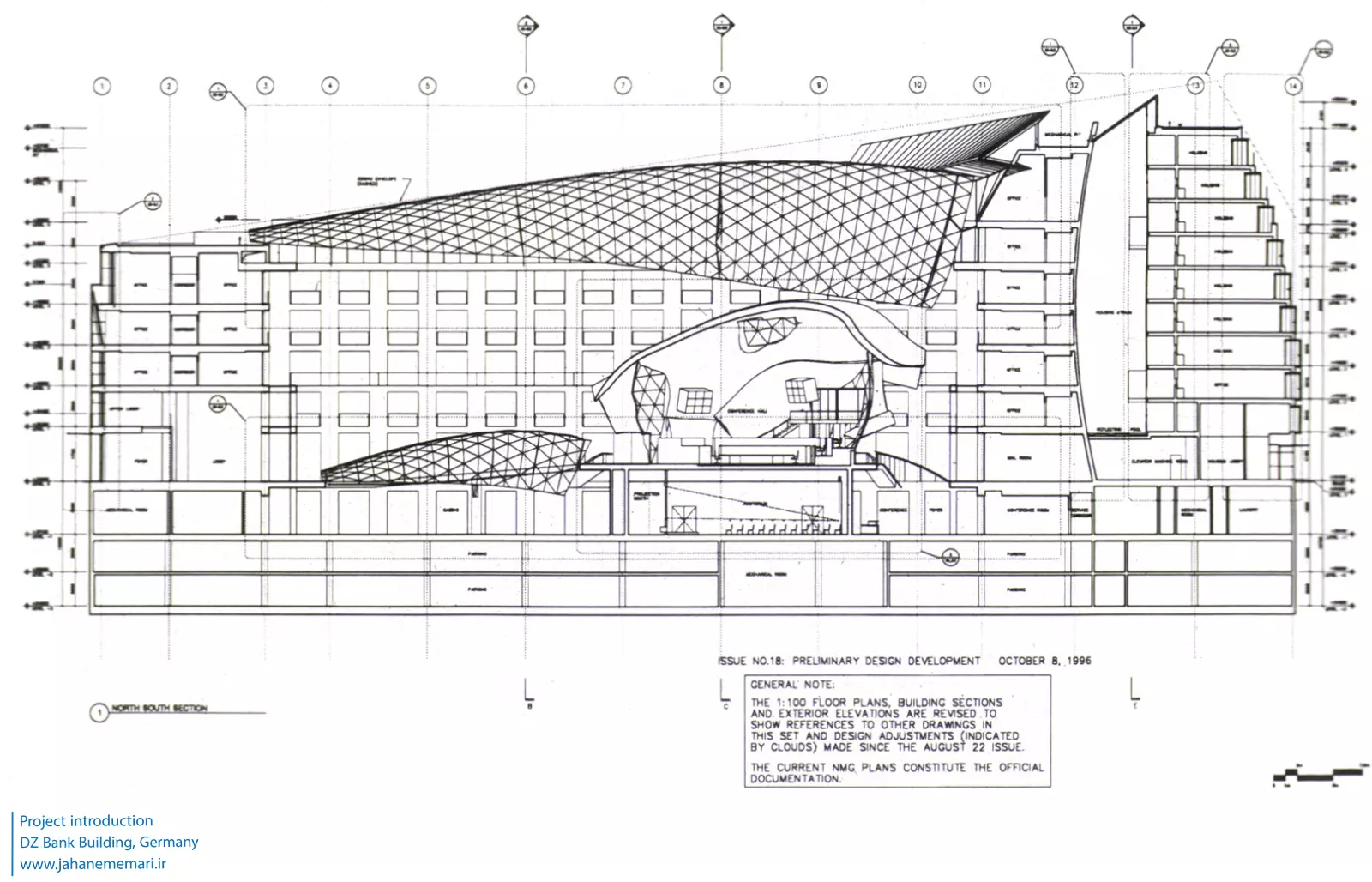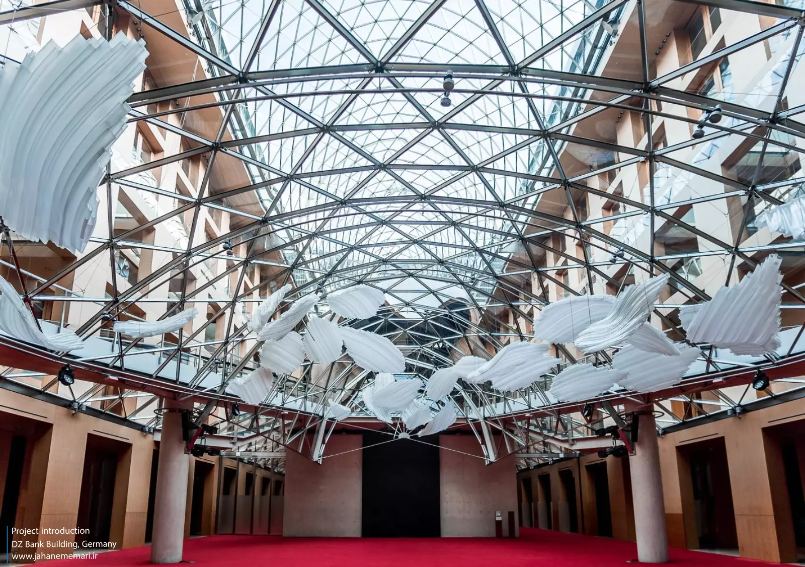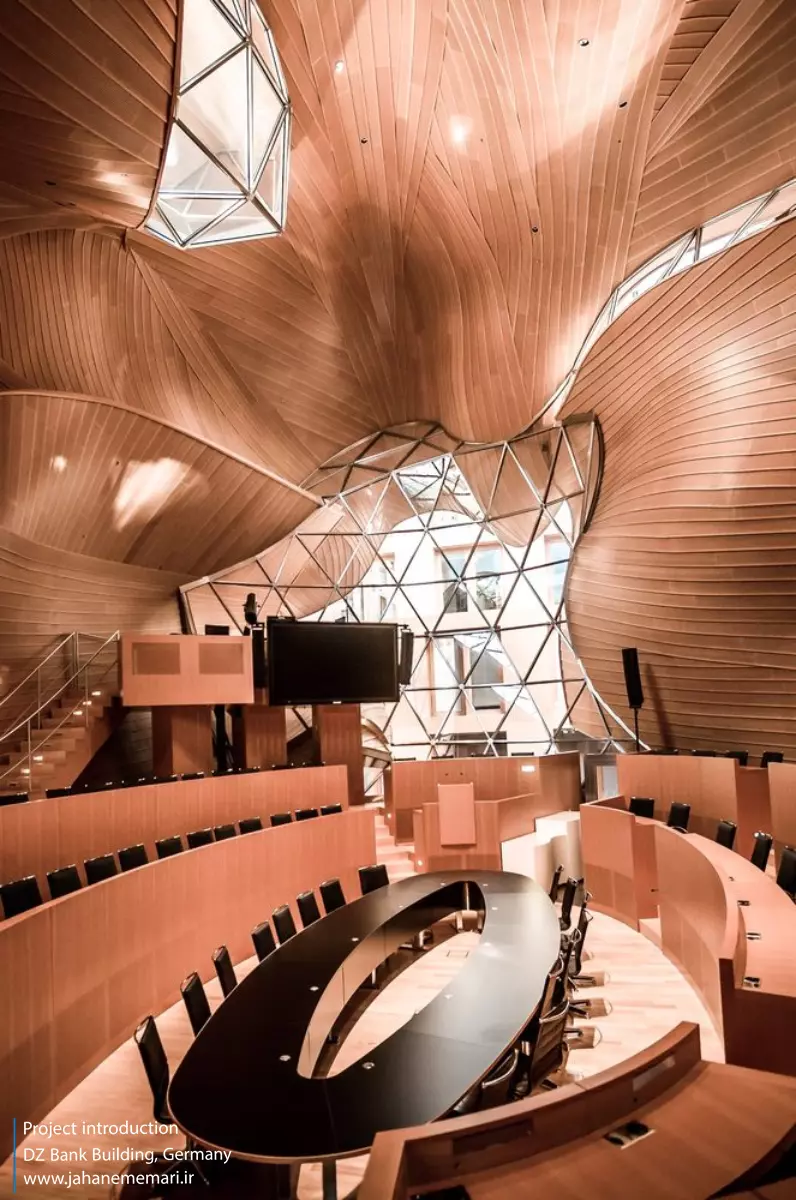 سالن اصلی کنفرانس بنا درون یک پوسته با فرم بسیار مجسمهوار در مرکز کف شیشهای آتریوم قرار دارد. این پوسته از بیرون با فولاد ضدزنگ و از داخل با چوب پوشیده شده است و بهعنوان «قلب فیزیکی و معنوی» کل پروژه در نظر گرفته میشود.