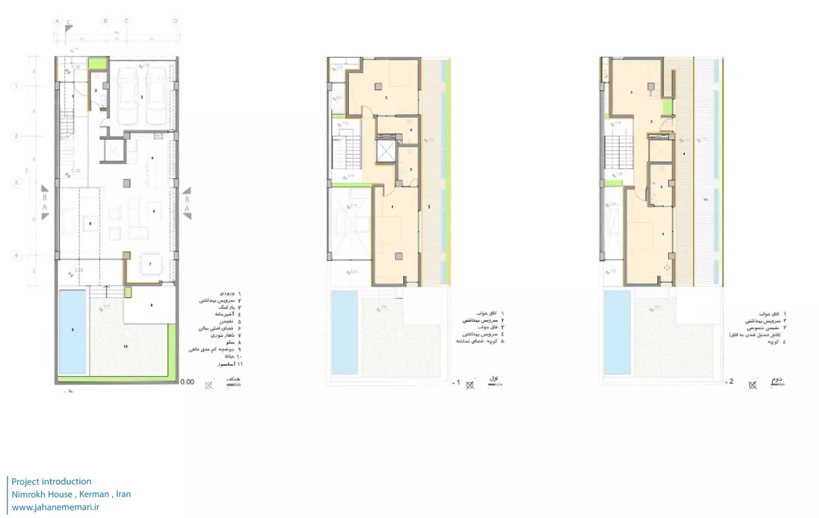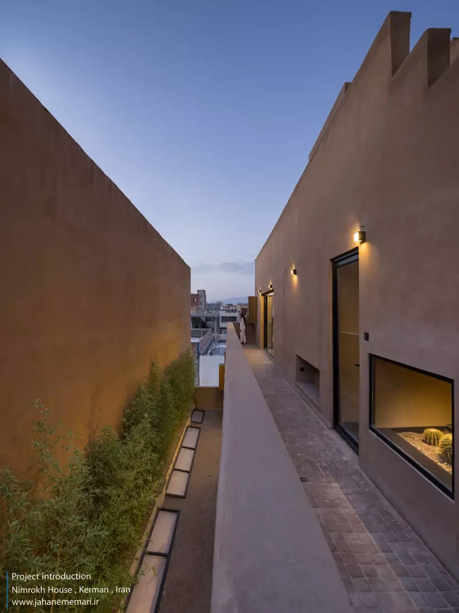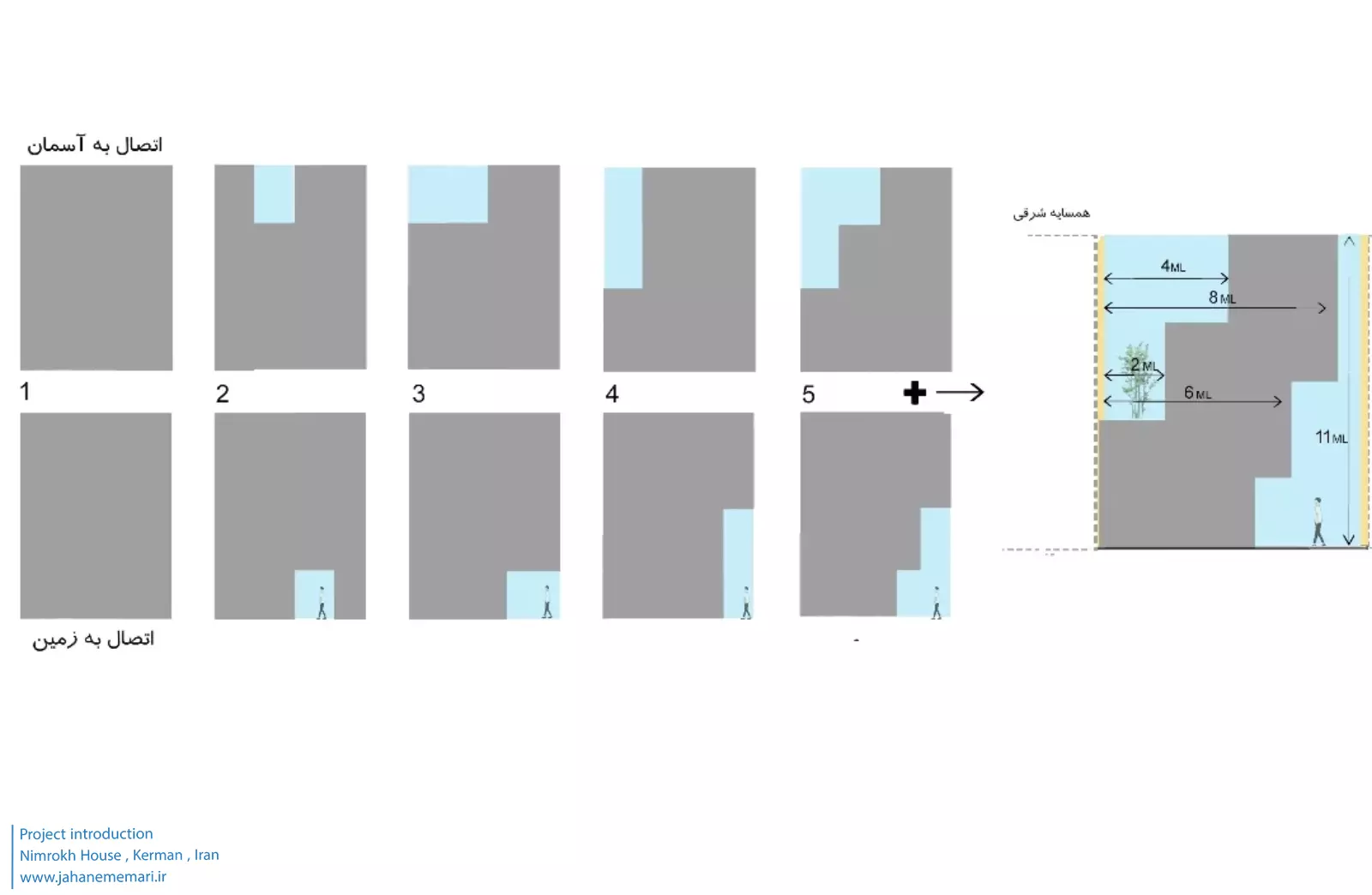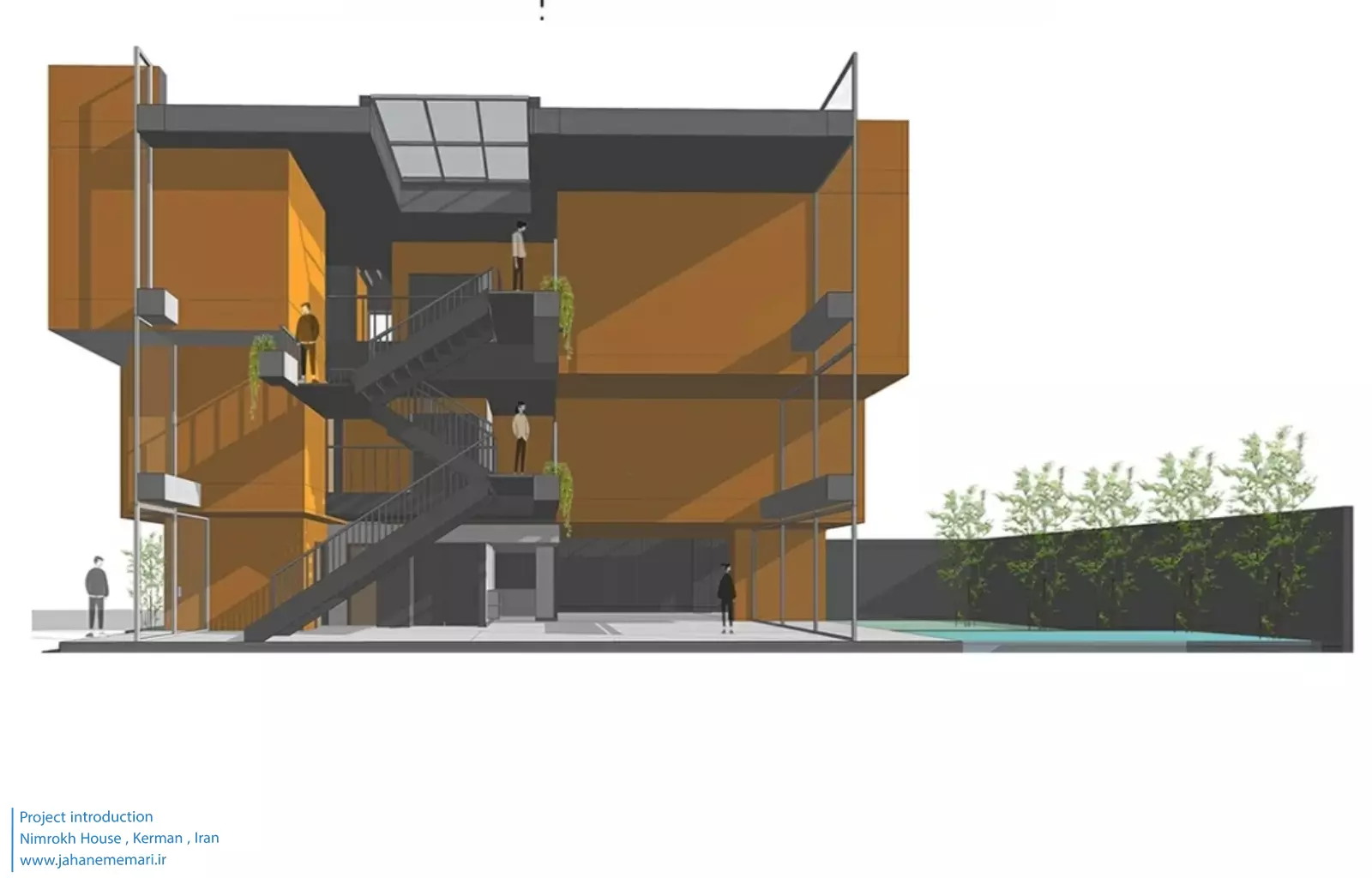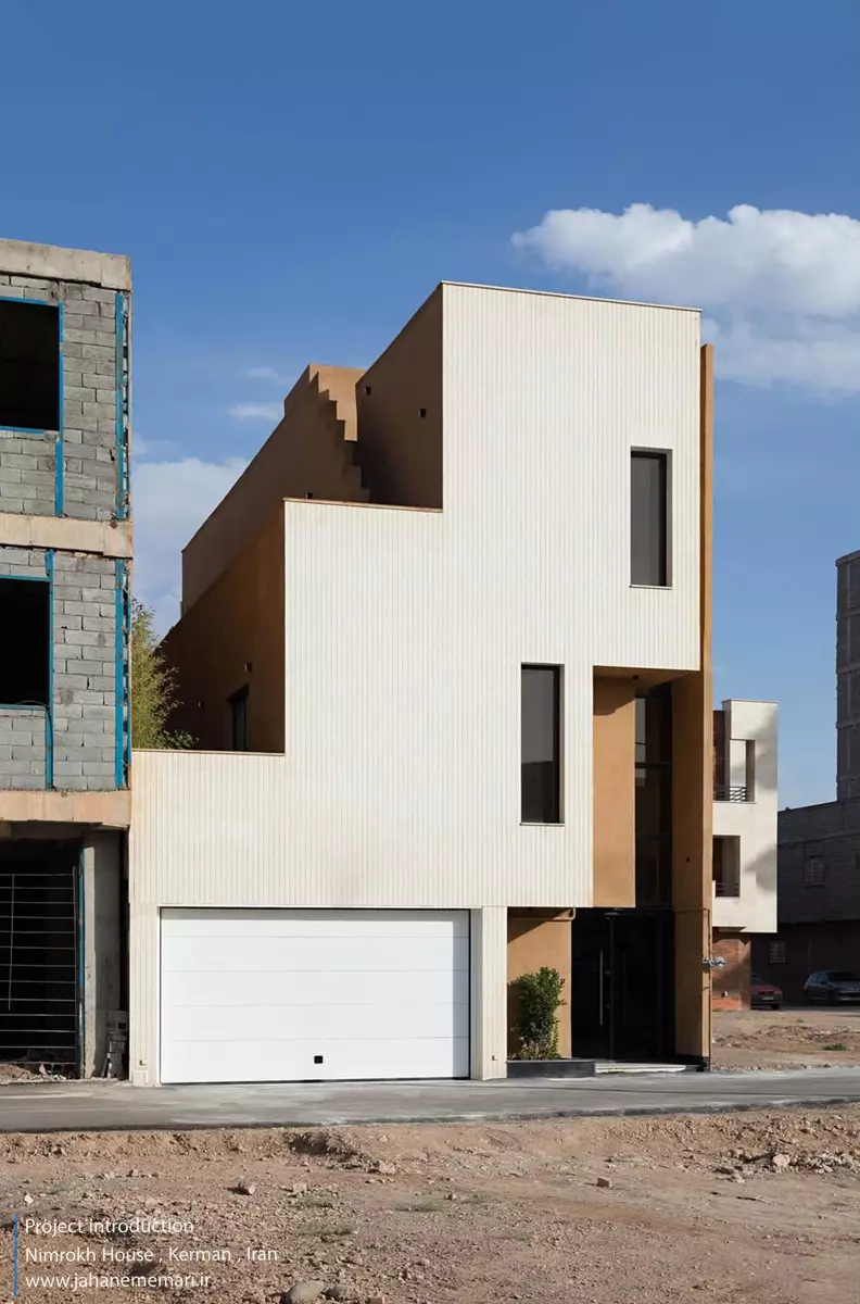 نیمرخ، بنایی تکواحدی در سه طبقه در زمینی جنوبی به مساحت 250متر مربع ، در یکی از شهرکهای در حال توسعه شهر کرمان قرار گرفته است، شهرکی که ضوابطی با تنوع تراکم بر ساخت و ساز در آنجا حاکم است.