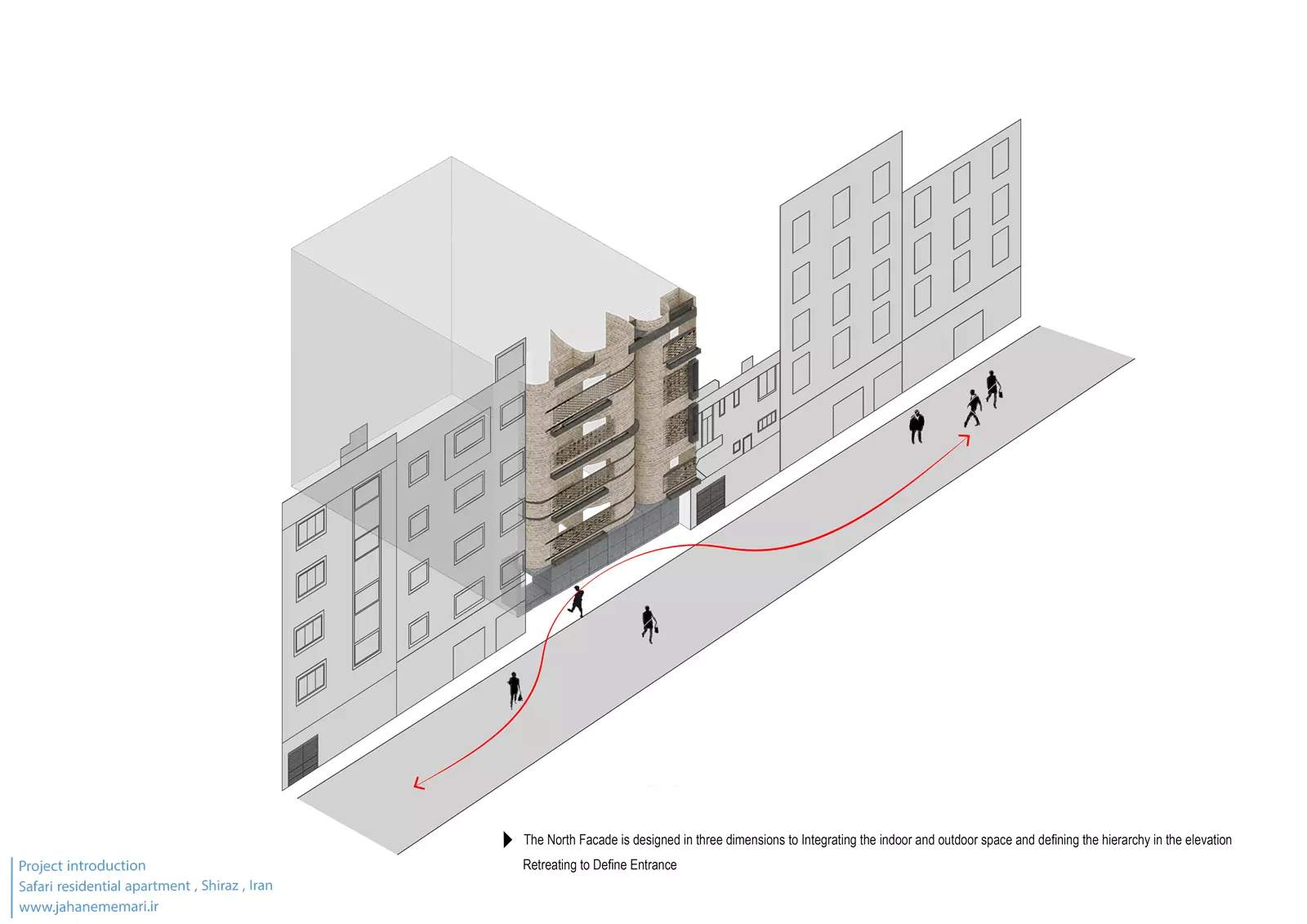 پروژه مسکونی صفری در جنوب شرقی شیراز در یکی از قدیمی ترین قسمت های شهر واقع شده است. امروزه توجه معماران در شهر بیشتر تمرکز بر نواحی ثروتمند و عدم انجام پروژه های خلاقانه در نواحی فقیرتر است. وضعیت محیط سایت در حال کاهش و معماری فراموش شده است که بر ساختار شهر و جنبه بصری منطقه تاثیر می گذارد. به همین دلیل، چشم انداز اولیه برای ساخت این پروژه تلاش کوچکی است برای احیای وضعیت رکود طراحی سایت است.